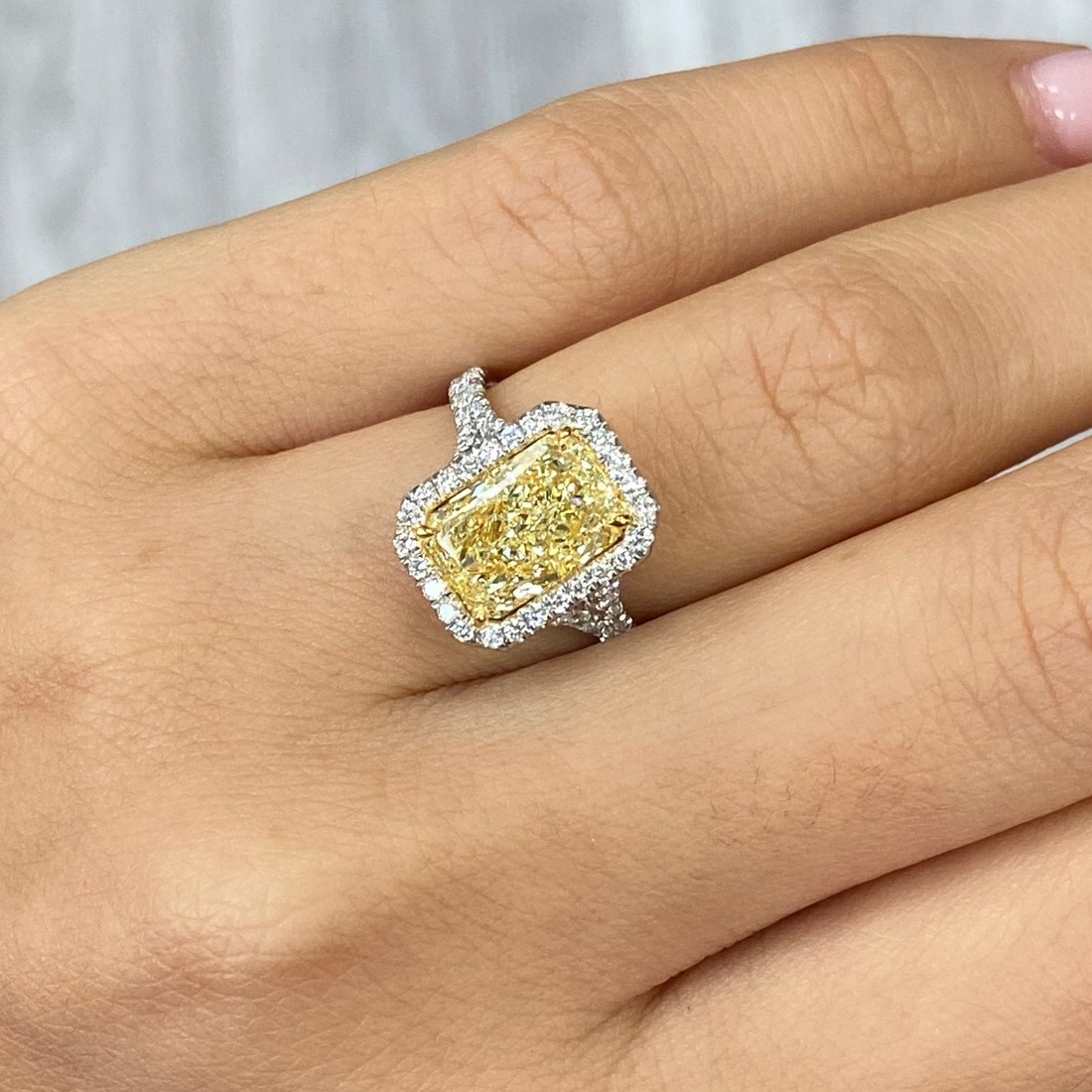 3 Carat Radiant Diamond Ring | Fancy Yellow | 14K White Gold | Colour-Collector’s Treasure