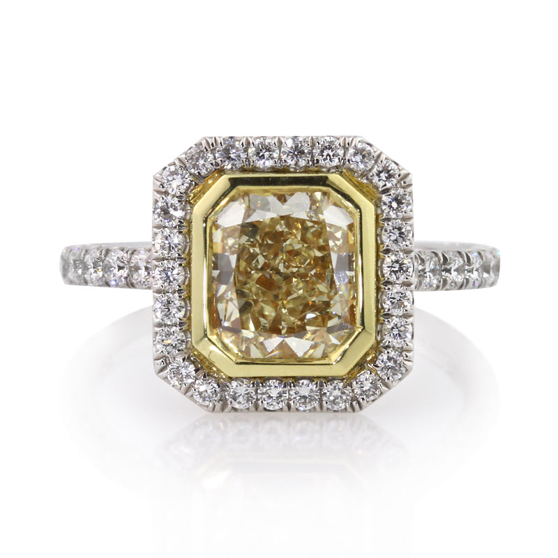 3 Carat Radiant Diamond Ring | Fancy Yellow | 14K White Gold | Sunlit Royal Radiance