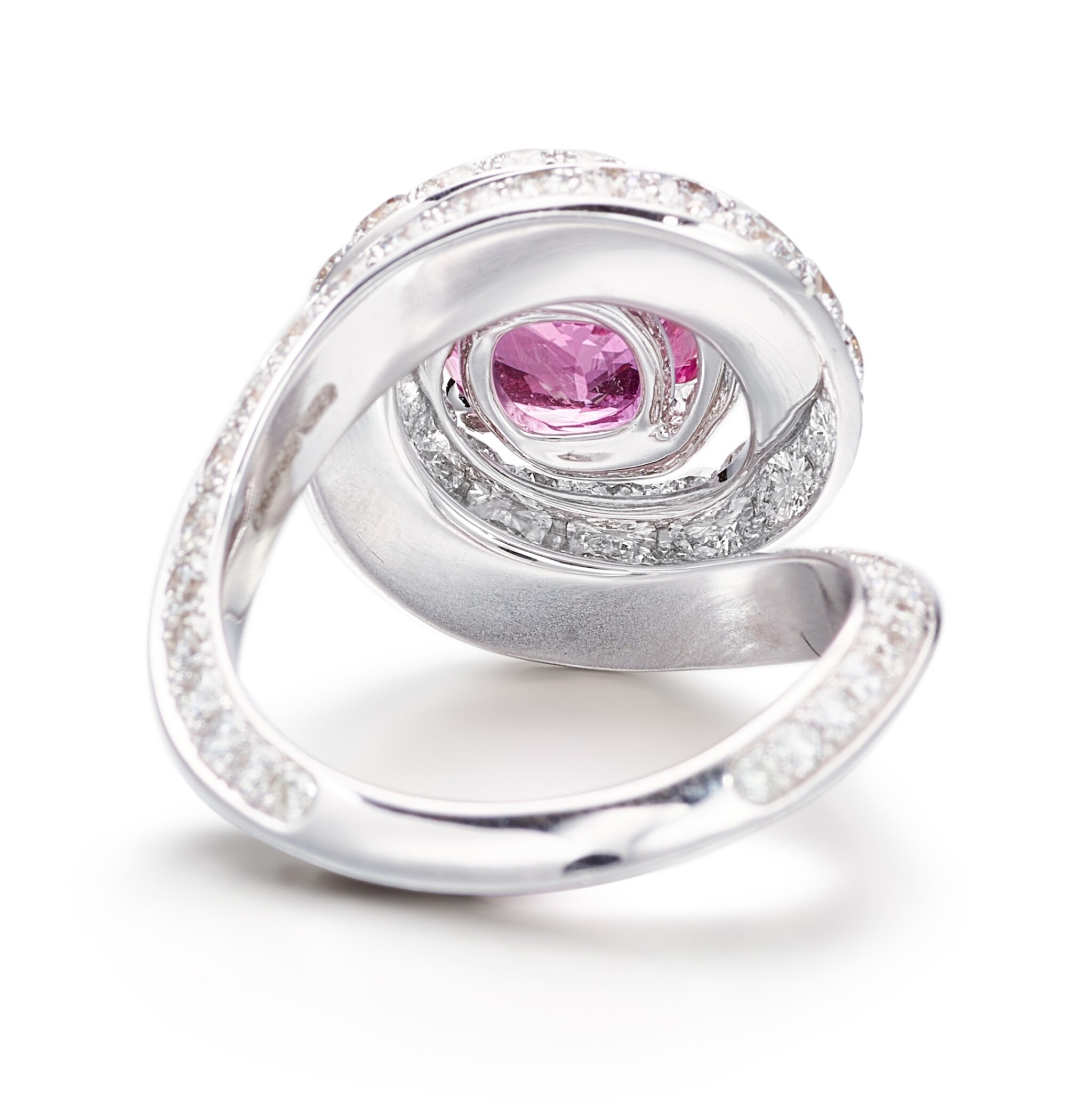 • Chris Paul Β· Championship rings are heavy with symbolism; this 3 carat pink sapphire and diamond ring distils that feeling into a refined mixed cuts / design ring profile and focused royal blue sapphire brightness suitable for every day.