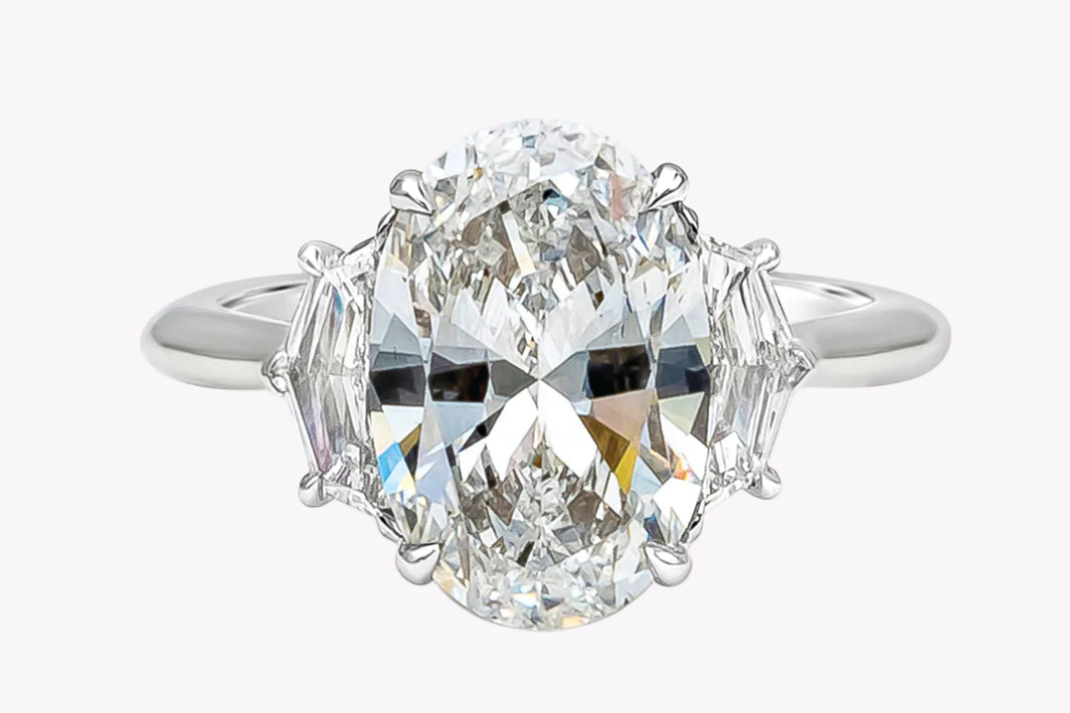 • Susan Arnold · From signing ceremonies to quiet desk work, jewellery should never feel like costume; this 000 certified 4.02 carat oval cut diamond three stone engagement ring relies on substantive oval craftsmanship and grounded brilliant white sparkle to avoid that.