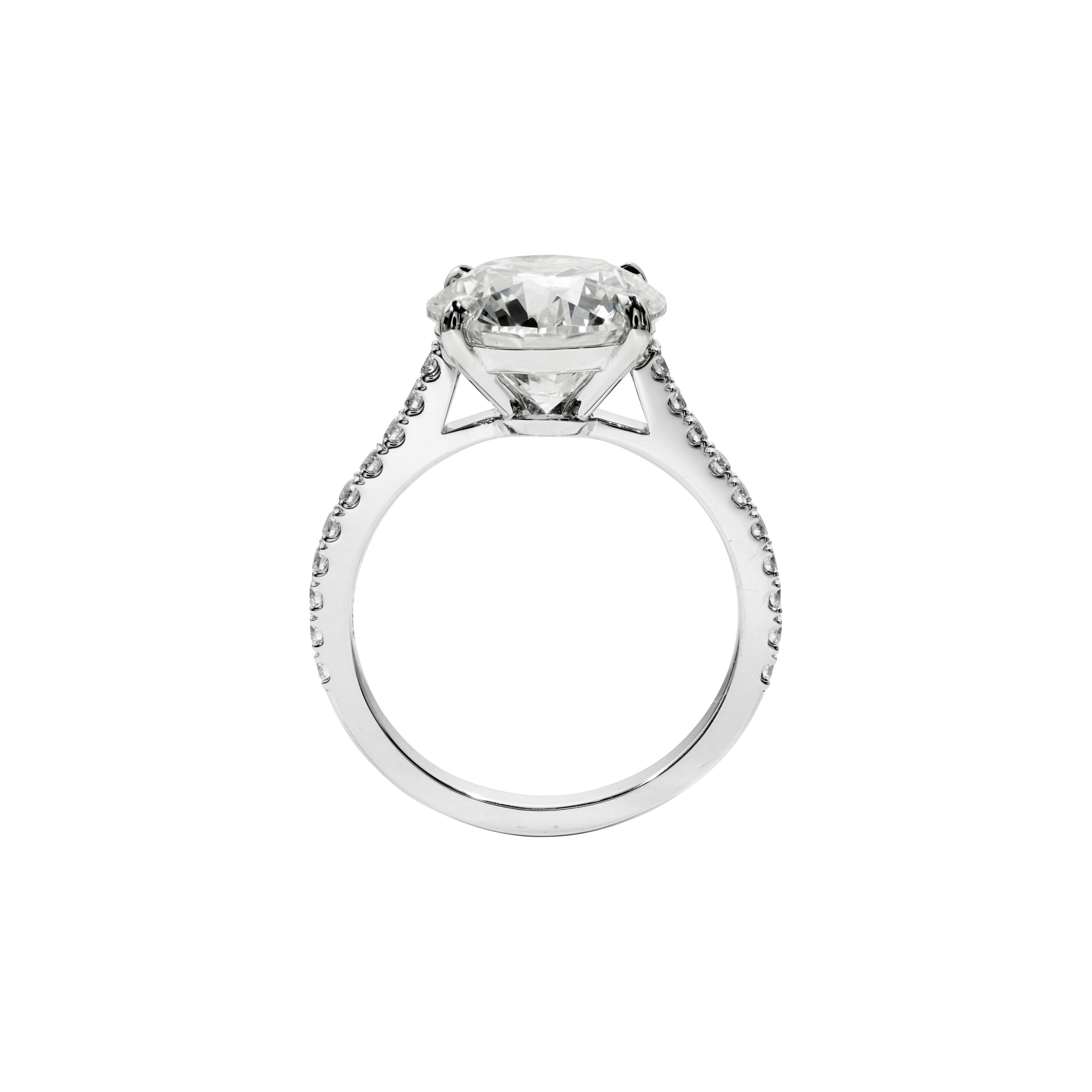 diamonds are screened for a refined face-up appearance: minimal light leakage, a clean table and a harmonious contrast between bright and shaded facets that gives the ring its three-dimensional life.
