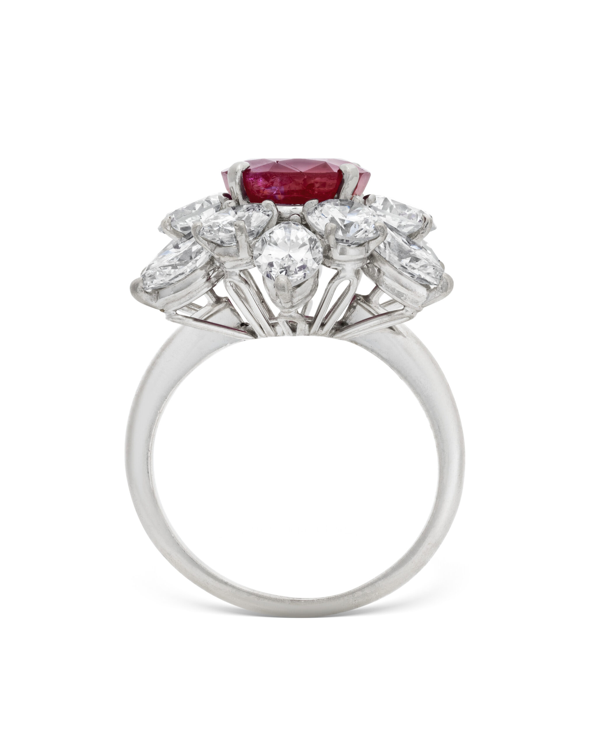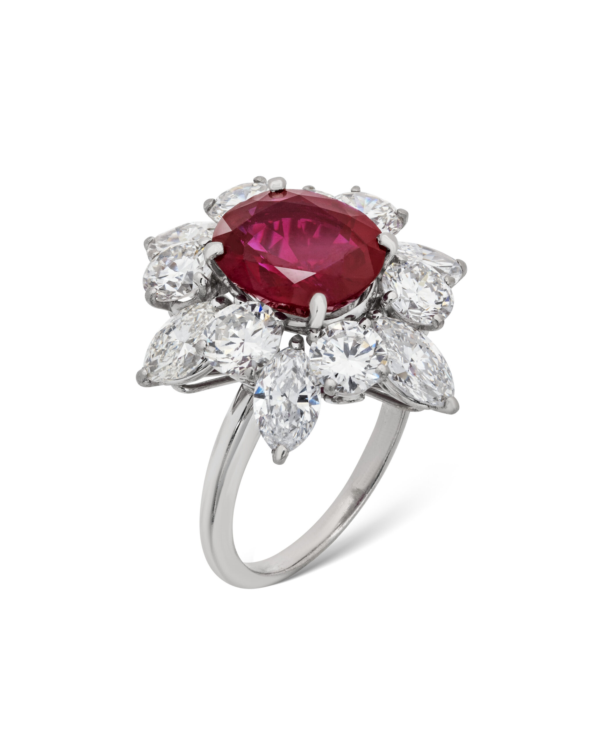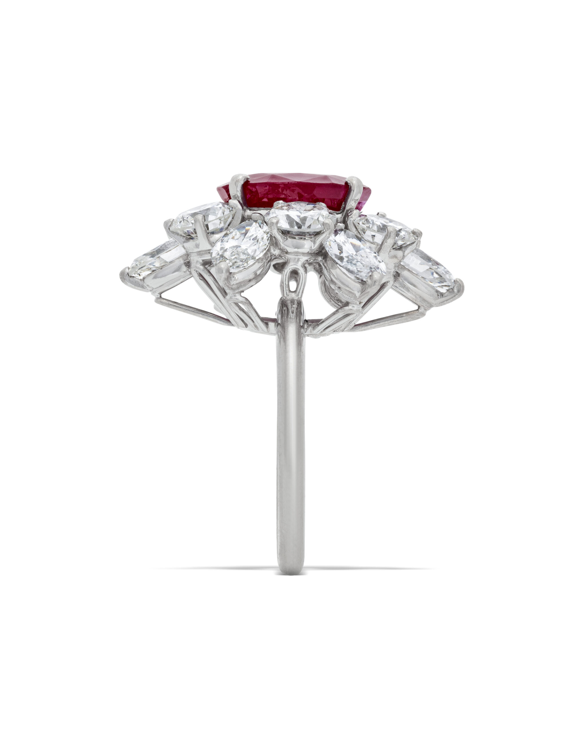 The presence of oval diamonds in this Ruby Red palette gives the ring a calm, confident radiance that transcends trend and season.