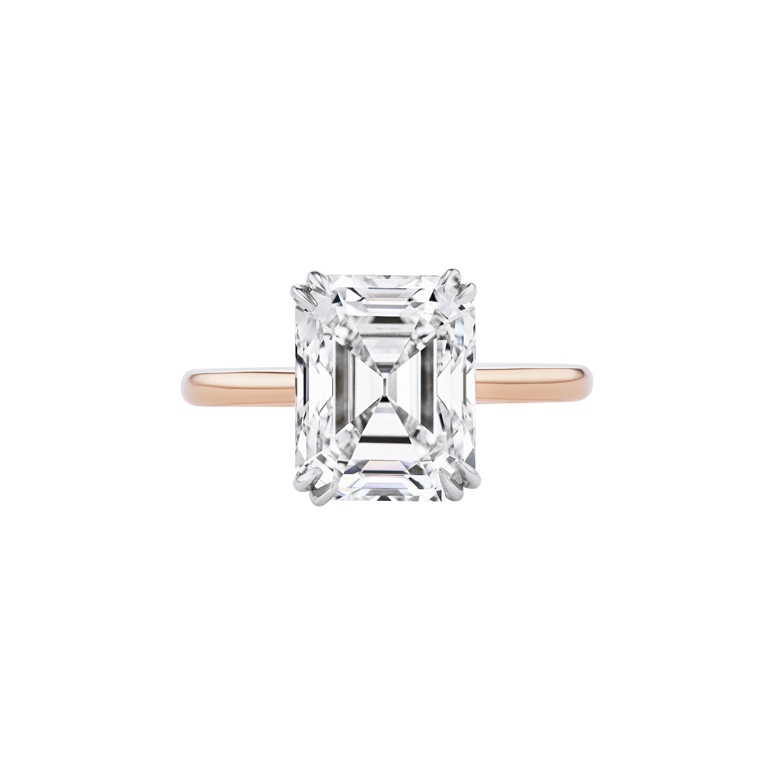 The presence of Emerald cut diamonds in this Emerald Green palette gives the ring a calm, confident radiance that transcends trend and season.