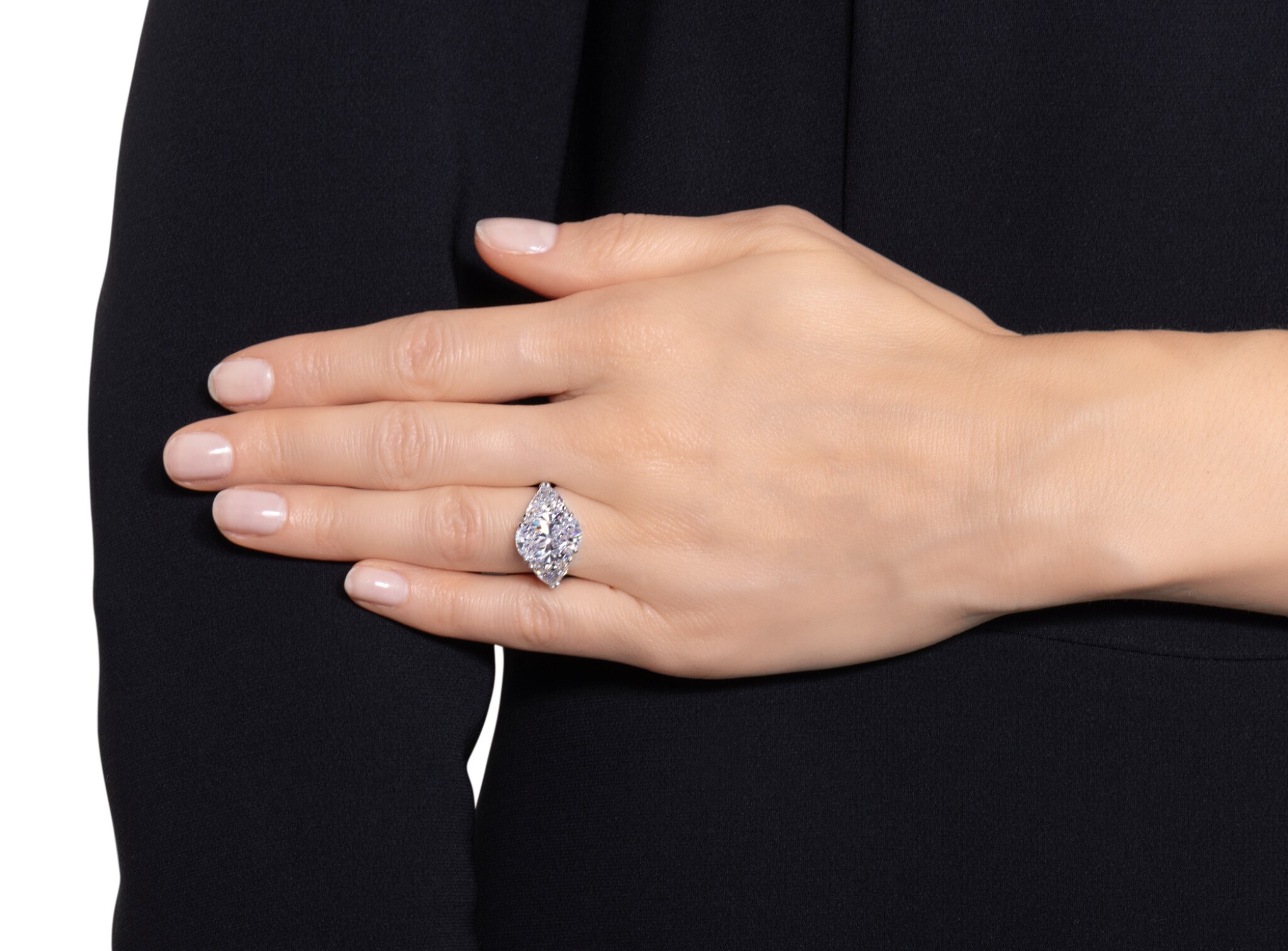 Styled correctly, a 4 carats Brilliant White High Jewelry Statement Ring like this can anchor your entire jewelry story. In the day, keep things deliberate and minimal β a single wedding band or eternity ring, a discreet pair of studs and perhaps one bracelet are enough to let the diamonds speak without competition.
