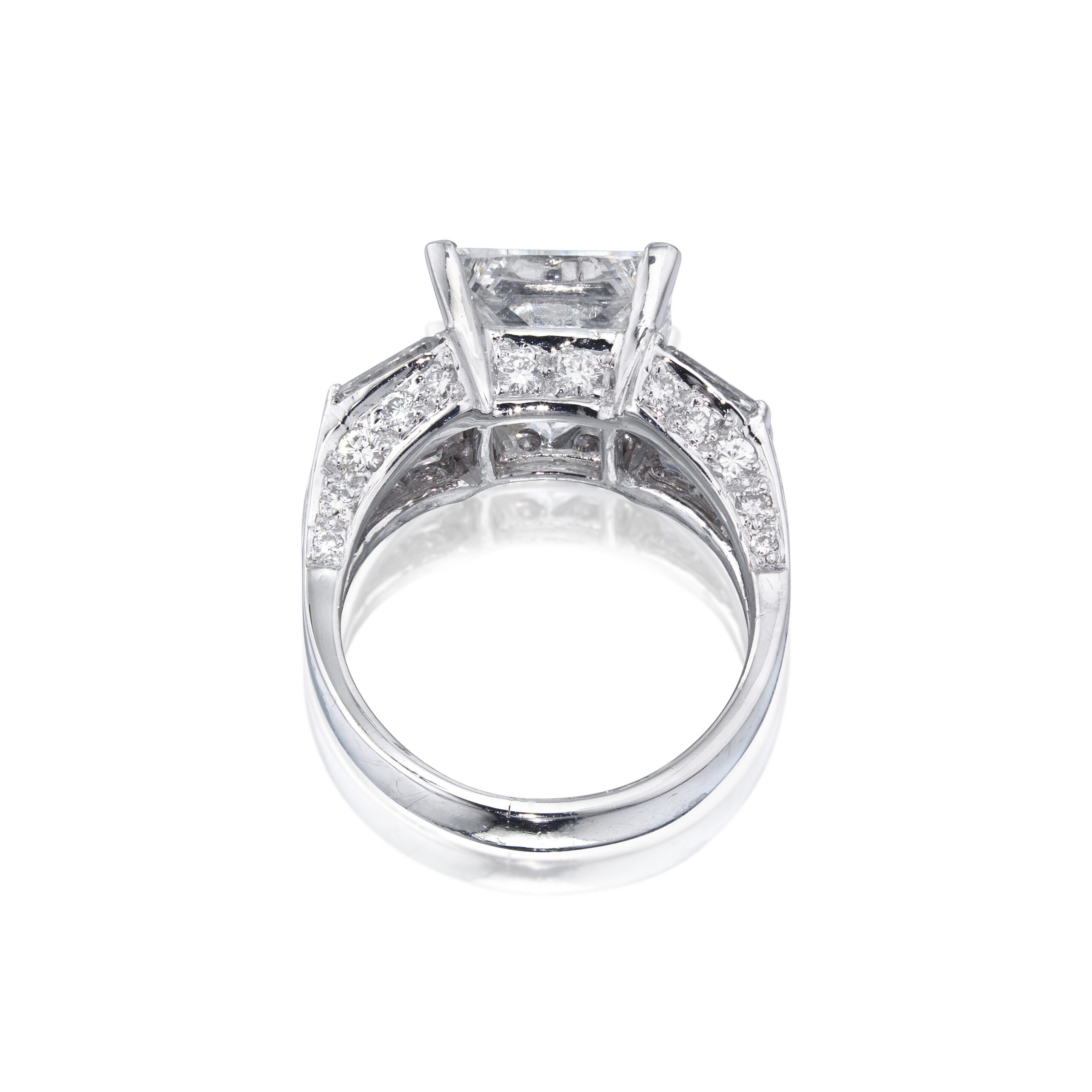 Approximately 4 carats, princess, statement ring, diamond ring. A serious diamond ring with disciplined selectionβ€”meant to read clean at normal viewing distance. Colour family: Brilliant White / D color. Clarity: VVS. Metal: 14K White Gold. Chosen and composed for photography, evenings, and everyday gesturesβ€”so the ring looks impeccable in real life. The craftsmanship is engineered so the sparkle reads as one surface of lightβ€”not scattered points competing for attention. Made to be worn often, remembered clearly, and passed forward with pride. Crystal-Clear Grandeurβ€”a piece defined by brilliance, poise, and longevity.