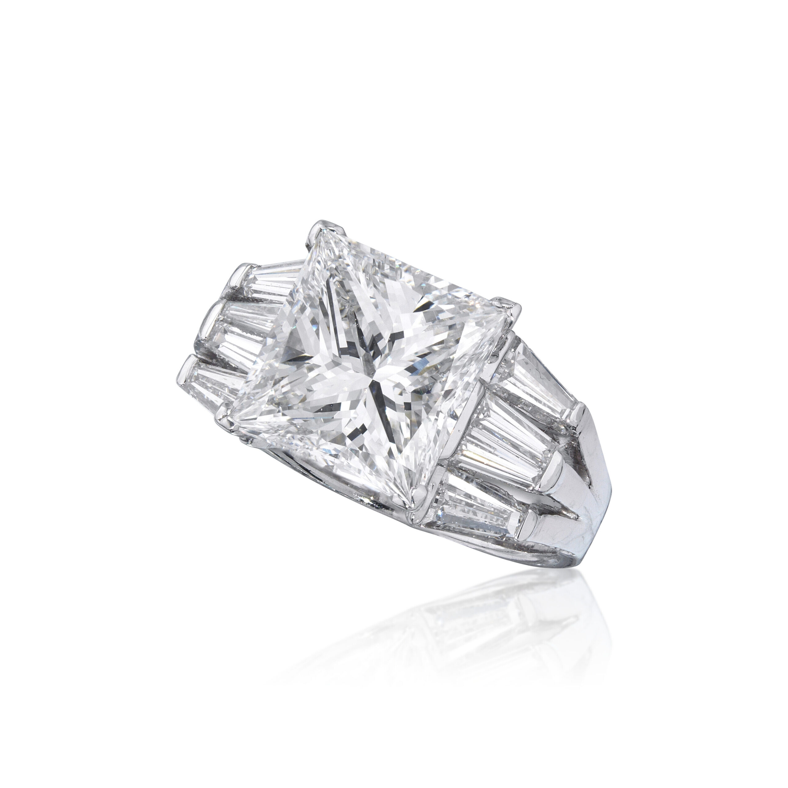 Approximately 4 carats, princess, statement ring, diamond ring. A connoisseur-led design where the face-up stays calm, crisp, and intentionally luxurious. Colour family: Brilliant White. Clarity: VS. It wears with authority without shoutingβsubstantial enough to anchor a look, restrained enough to stay timeless. Its value is in its discipline: the ring looks composed up close and commanding from across a room. An enduring asset in jewel form: beautiful to wear, credible to document. Everyday Royaltyβa piece defined by brilliance, poise, and longevity.