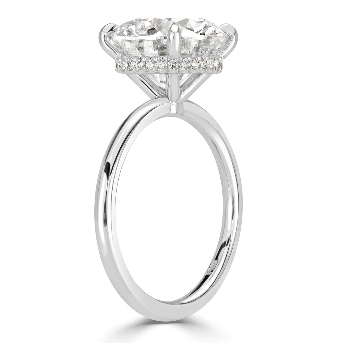 The interplay of 4 carats and Brilliant White produces a ring that reads as a serious carat investment on the hand. At the same time, the controlled height and footprint ensure it sits securely and comfortably through a full day or evening.