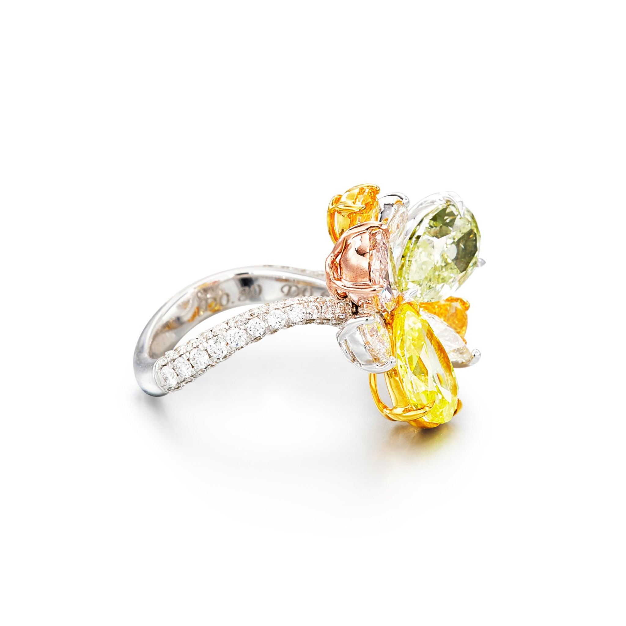 Because we consider all standard and custom ring sizes from the very beginning, future refinements remain possible without ever compromising the integrity of the setting or the security of the diamonds. are considered from the start, future adjustments remain possible without compromising the integrity of the setting or the security of the fancy colour diamonds.