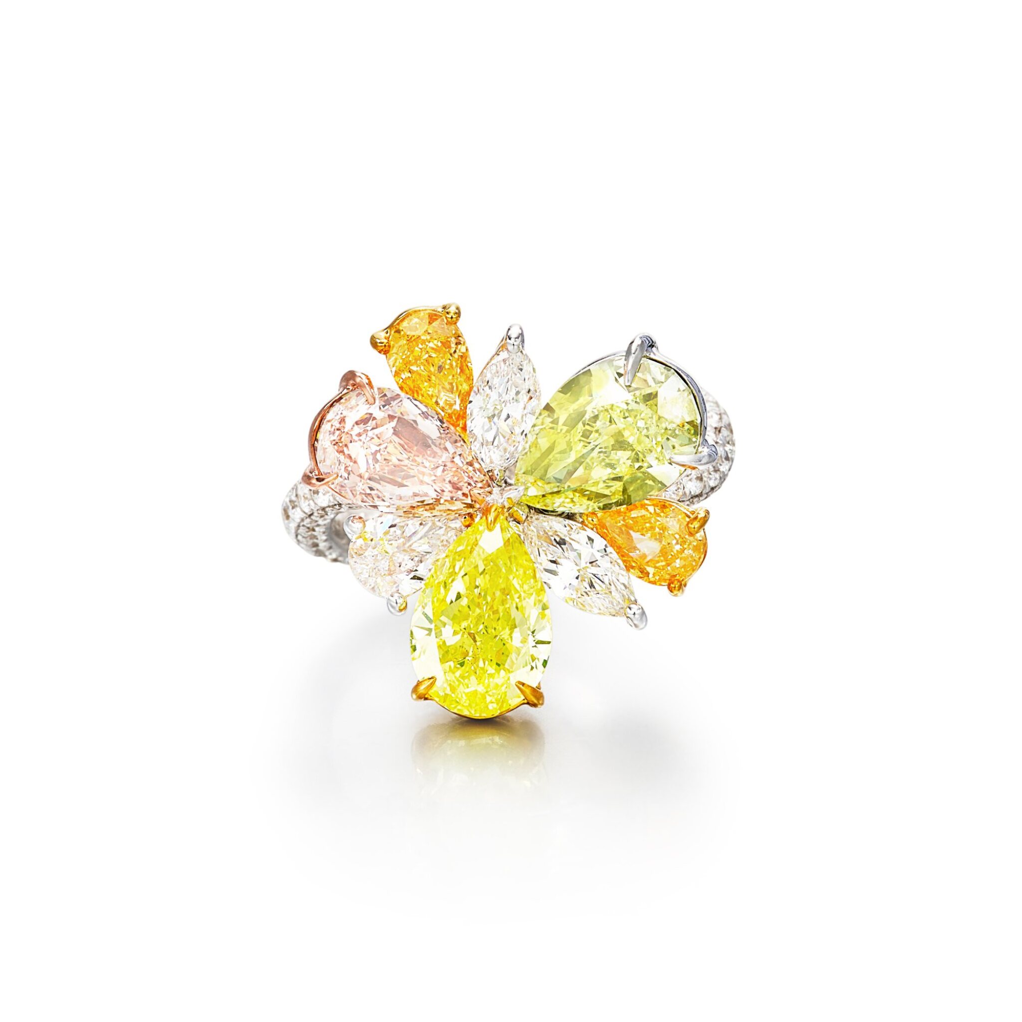 The interplay between the fancy colour diamonds and the carefully judged proportions ensures that the Fancy Yellow radiance is the first and last thing the eye notices.