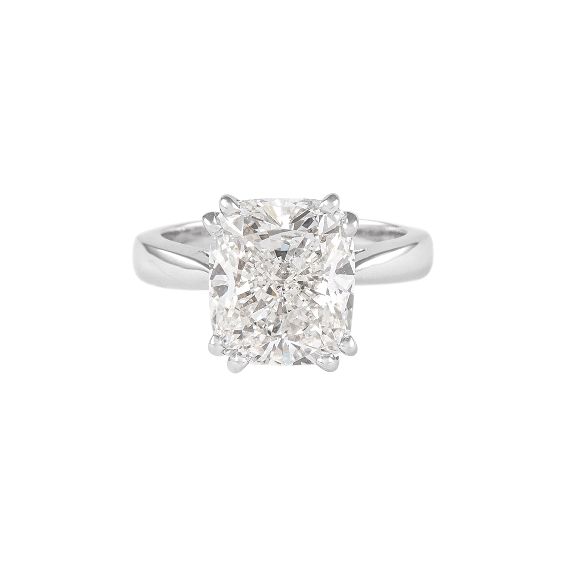 Approximately 5.01 carats, cushion, diamond ring. Designed to feel like a personal signature: refined, wearable, and unmistakably high-end. Colour family: Brilliant White. Metal: 14K White Gold. Every decision is made for visual integrity: even sparkle, clean outline, and a flattering look across lighting conditions. It is the kind of ring that lives well in a serious jewellery wardrobe: confident, clean, and consistently flattering. For clients who invest in fewer, better jewels—and want that decision to show. Radiant Elegance—a piece defined by brilliance, poise, and longevity.