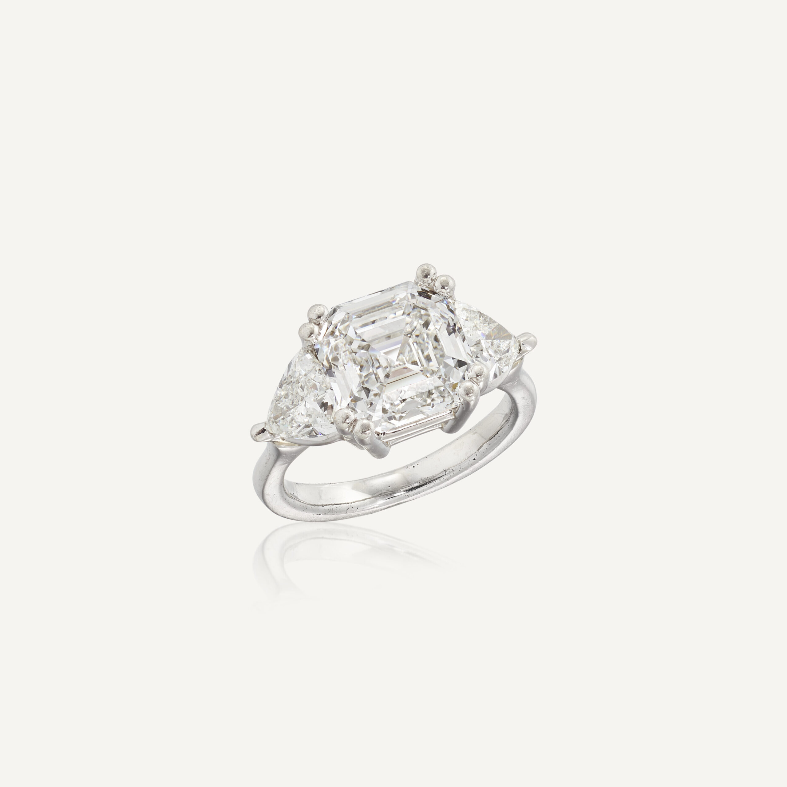 Approximately 5.06 carats, assher cut, statement ring, diamond ring. A connoisseur-led design where the face-up stays calm, crisp, and intentionally luxurious. Colour family: Brilliant White. Clarity: SI. Metal: 14K White Gold. Every decision is made for visual integrity: even sparkle, clean outline, and a flattering look across lighting conditions. The craftsmanship is engineered so the sparkle reads as one surface of lightβnot scattered points competing for attention. Ideal for boardroom-to-black-tie wear, with a look that stays precise under close scrutiny. Timeless Brillianceβa piece defined by brilliance, poise, and longevity.