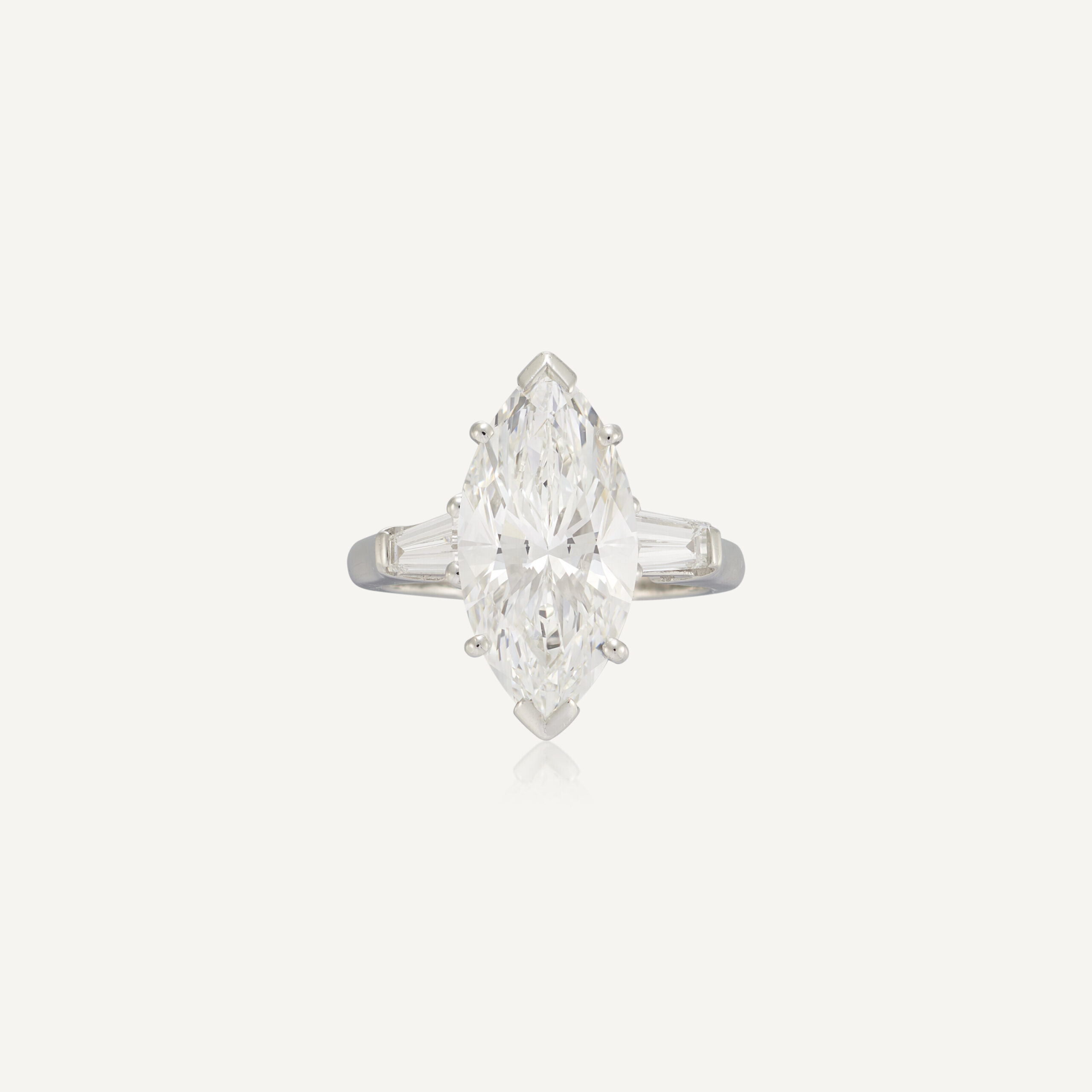 Inspired by the great high jewelry rings seen on red carpets and at state dinners, this Legacy creation showcases approximately 5.08 carats of Brilliant White Marquise diamonds in a deliberately timeless profile.