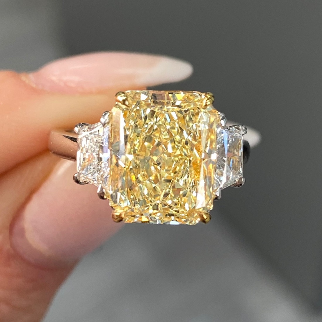 From a styling perspective, the strength of this design lies in its clarity: a disciplined row of Radiant fancy colour diamonds, a focused 5.15 carats of Fancy Yellow light and a considered Engagement Ring profile. In everyday use, that means you can keep everything else quiet and still feel fully dressed β a single bracelet, a classic pair of earrings and perhaps one additional ring are more than enough.