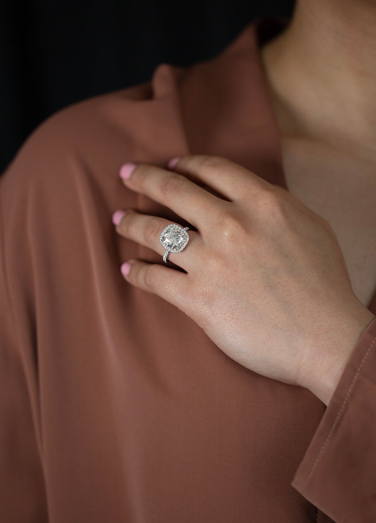 Many of our clients first meet this design as a Heirloom-level luxury gift: a ring that carries 5.19 carats of diamonds but, more importantly, carries the weight of everything that has been shared and built together. The measured Brilliant White glow and the composed Cushion silhouette make it feel intimate rather than ostentatious.