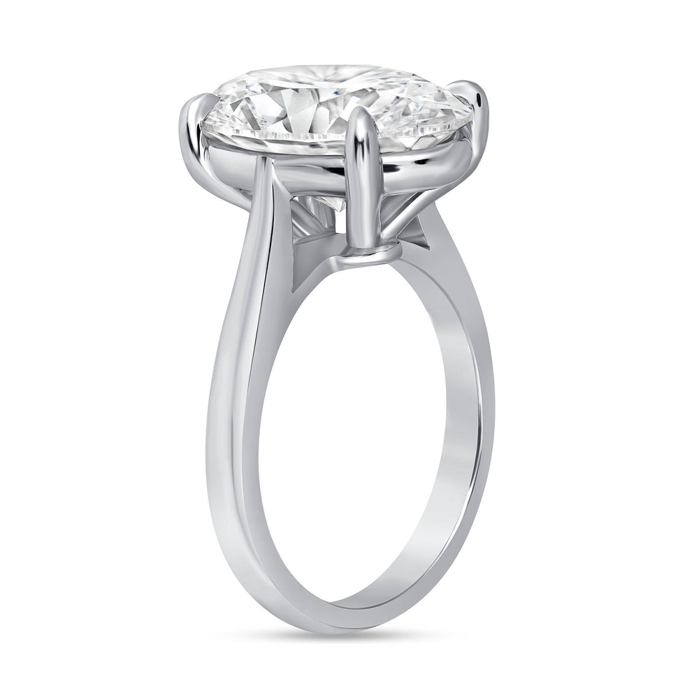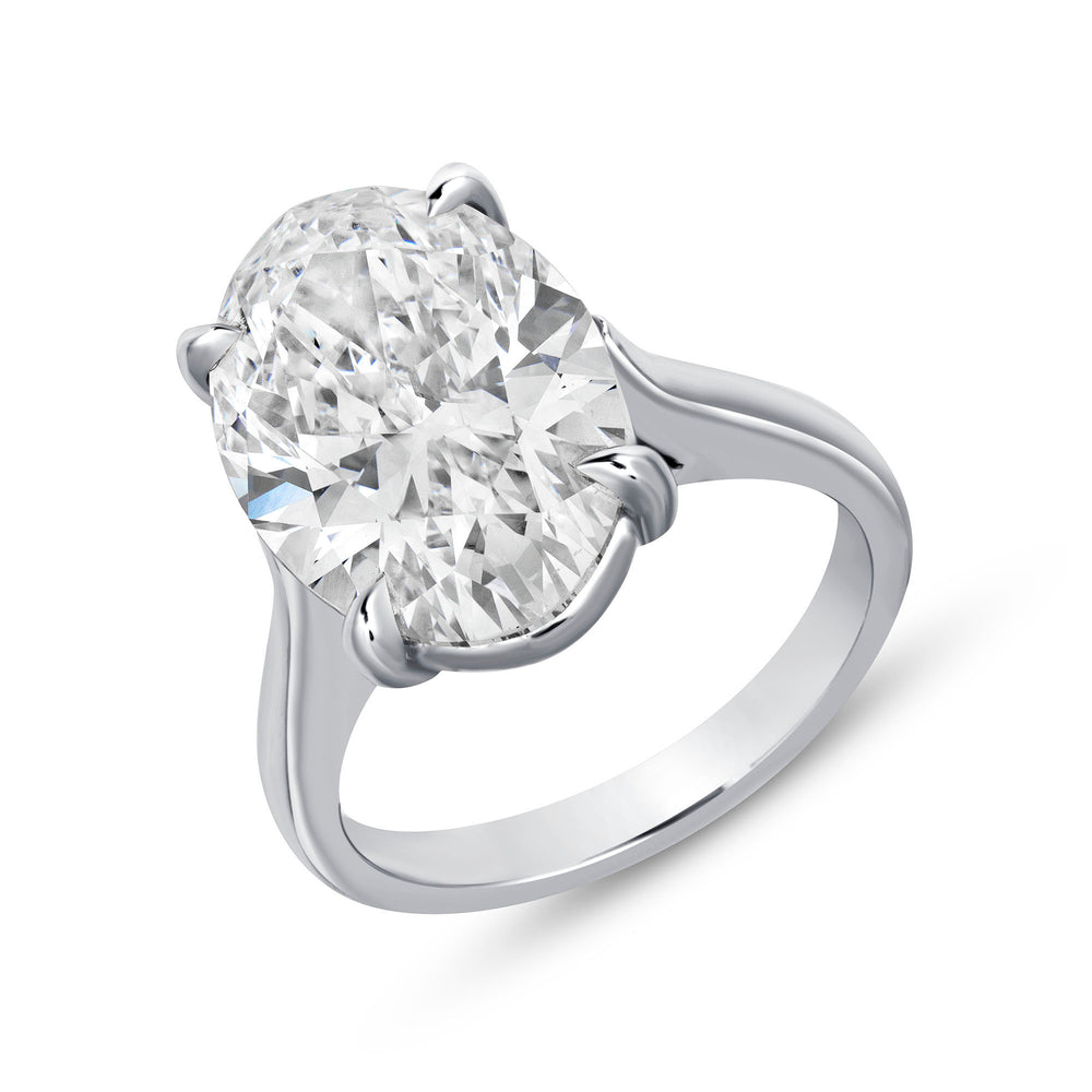 Approximately 5.5 carats, oval, statement ring, diamond ring. A modern classic that balances presence with polish, engineered for long-term wear. Colour family: Brilliant White. The setting prioritises stability and comfort, so the diamonds sit securely while keeping light open across the surface. The craftsmanship is engineered so the sparkle reads as one surface of light—not scattered points competing for attention. A natural choice for milestones, private collections, and heirloom-led gifting. Timeless Brilliance—a piece defined by brilliance, poise, and longevity.