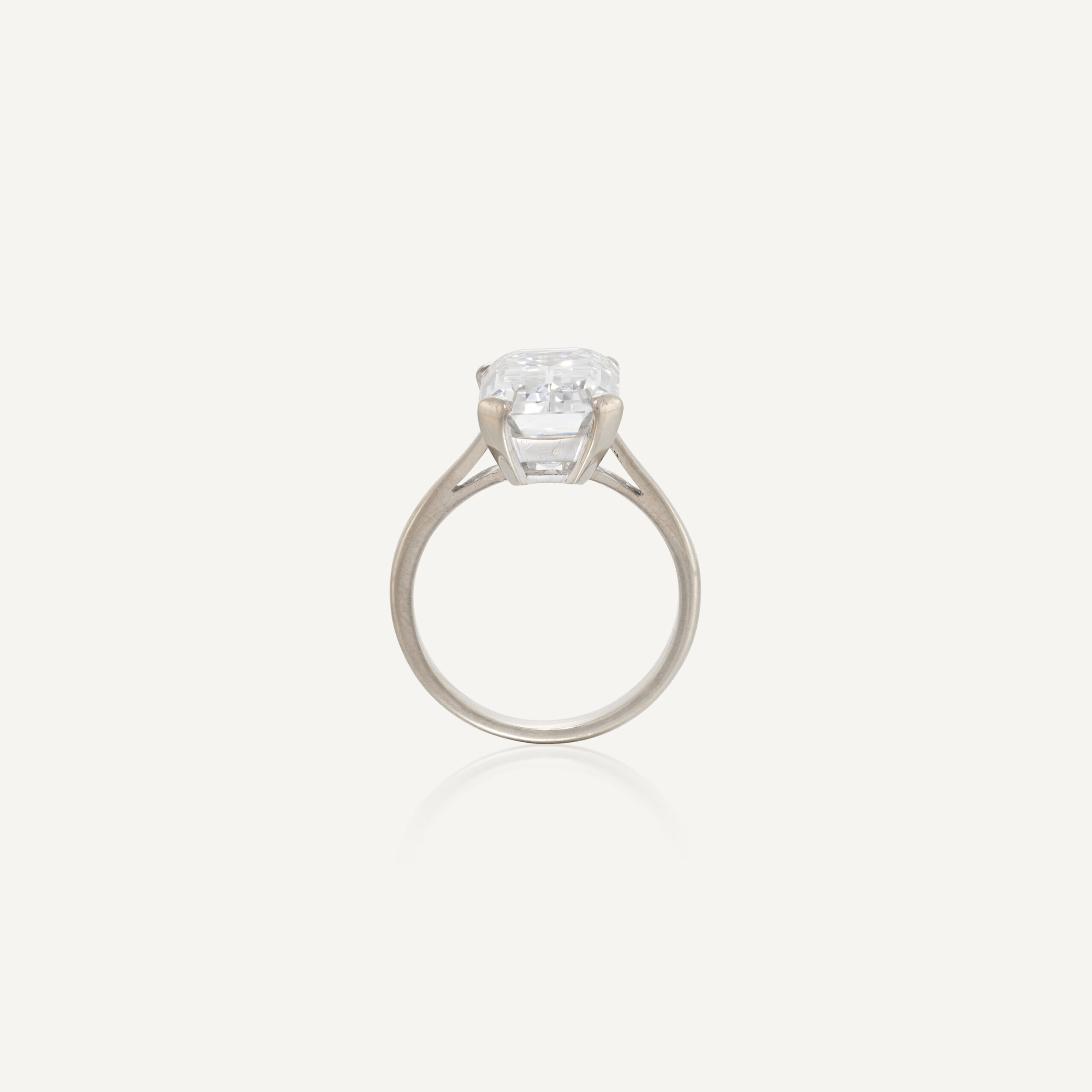 Drawing on the visual codes of important private-collection pieces, this Legacy ring frames approximately 5.88 carats of Emerald Green Emerald cut diamonds in a poised, architectural setting.