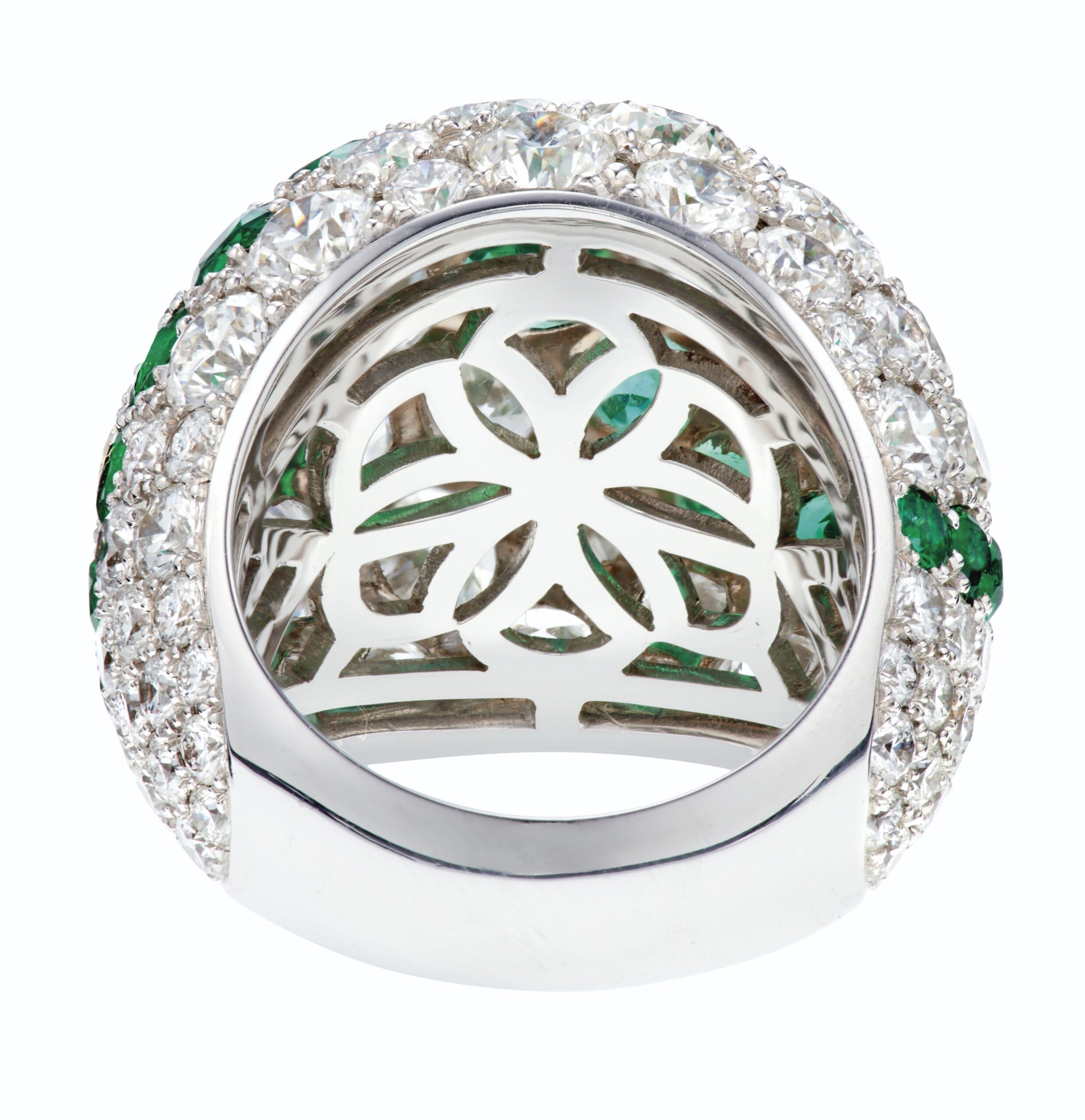 Clients drawn to this ring usually know exactly what they like: strong diamonds and gemstones, disciplined design and a presence on the hand that reads as serious from across the room. The High Jewelry Statement Ring format and 5 carats of Emerald Green brilliance place it squarely in the world of high jewelry rather than everyday fashion.