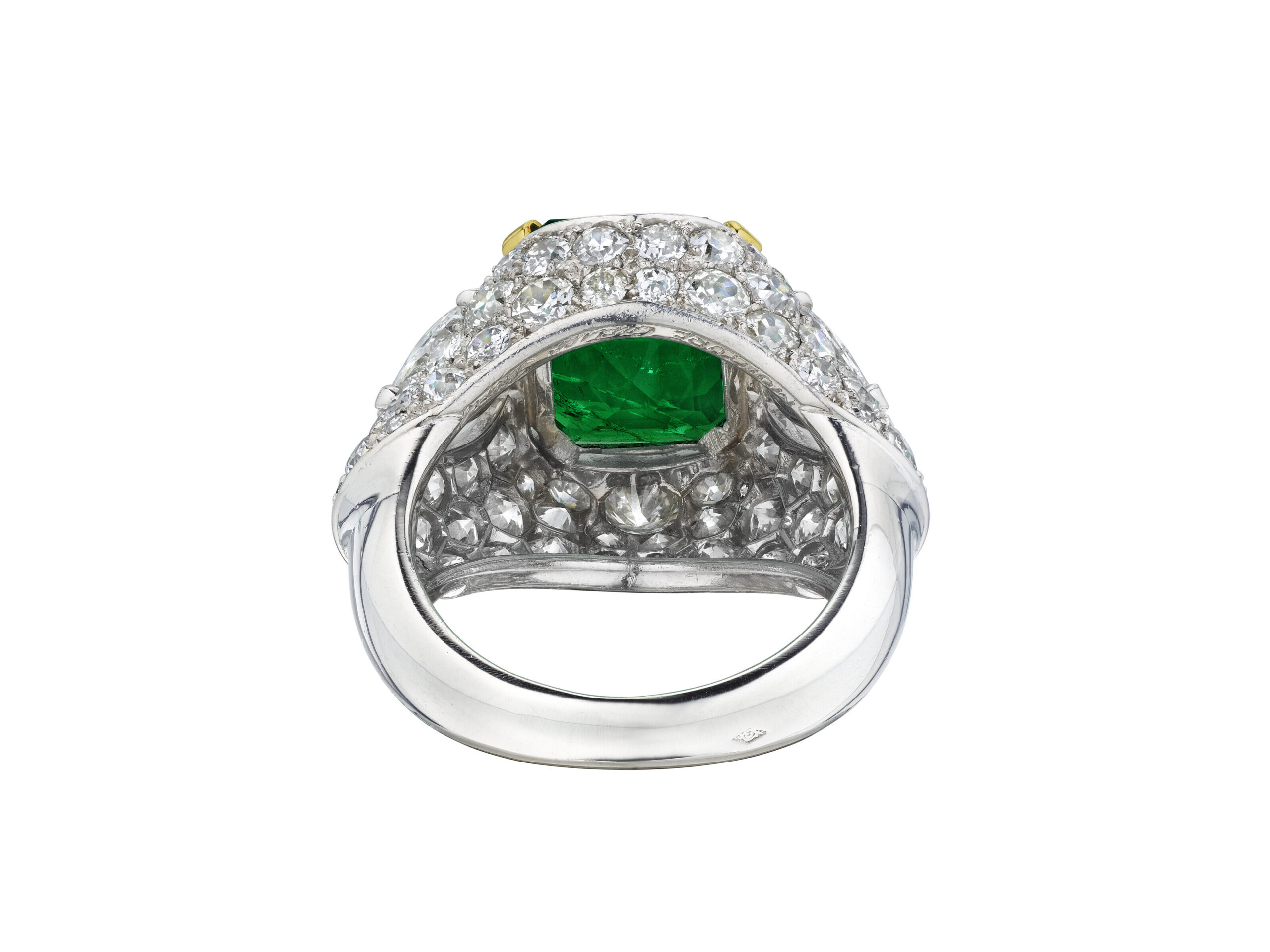 For clients who divide their time between cities and climates, we recommend keeping this 5 carats Emerald Green piece in a dedicated travel case whenever it is not on the hand. Separate, cushioned compartments prevent contact with other jewels and protect both the gemstones and the 14K White Gold finish during flights and hotel stays.