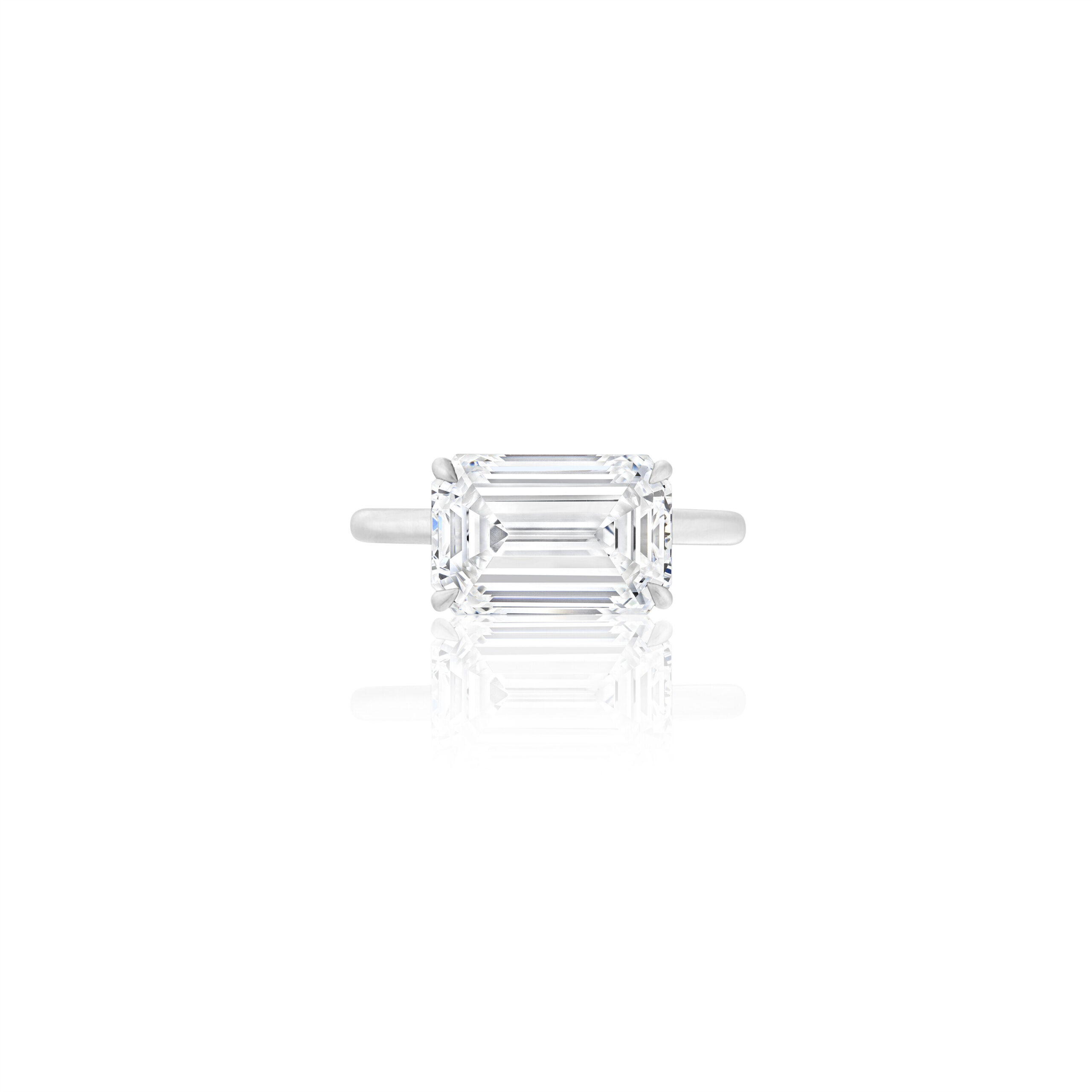Type iia, approximately 5 carats, emerald, statement ring, diamond ring. Built for clients who judge a ring in motion, not only in perfect studio light. Colour family: Brilliant White. Every decision is made for visual integrity: even sparkle, clean outline, and a flattering look across lighting conditions. The craftsmanship is engineered so the sparkle reads as one surface of lightβ€”not scattered points competing for attention. A natural choice for milestones, private collections, and heirloom-led gifting. Refined Grandeurβ€”a piece defined by brilliance, poise, and longevity.