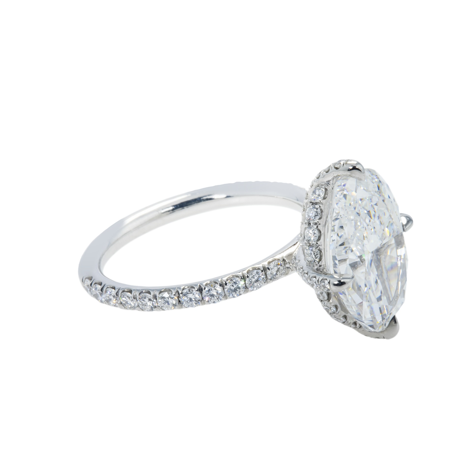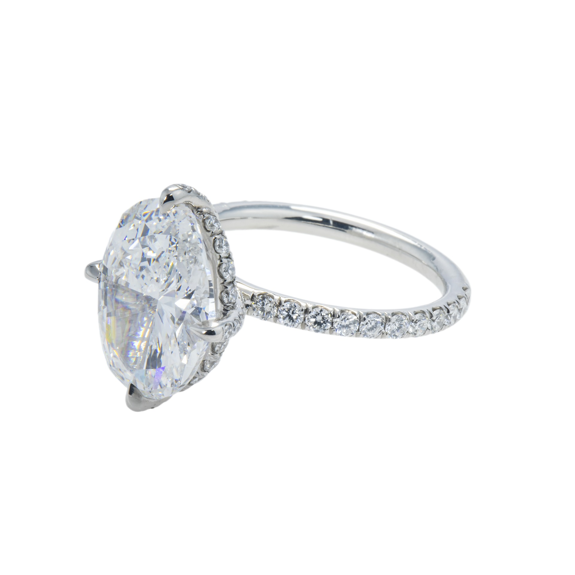 Approximately 5 carats, oval, diamond ring. A connoisseur-led design where the face-up stays calm, crisp, and intentionally luxurious. Colour family: Brilliant White. The setting prioritises stability and comfort, so the diamonds sit securely while keeping light open across the surface. It is the kind of ring that lives well in a serious jewellery wardrobe: confident, clean, and consistently flattering. A natural choice for milestones, private collections, and heirloom-led gifting. Refined Grandeurβa piece defined by brilliance, poise, and longevity.