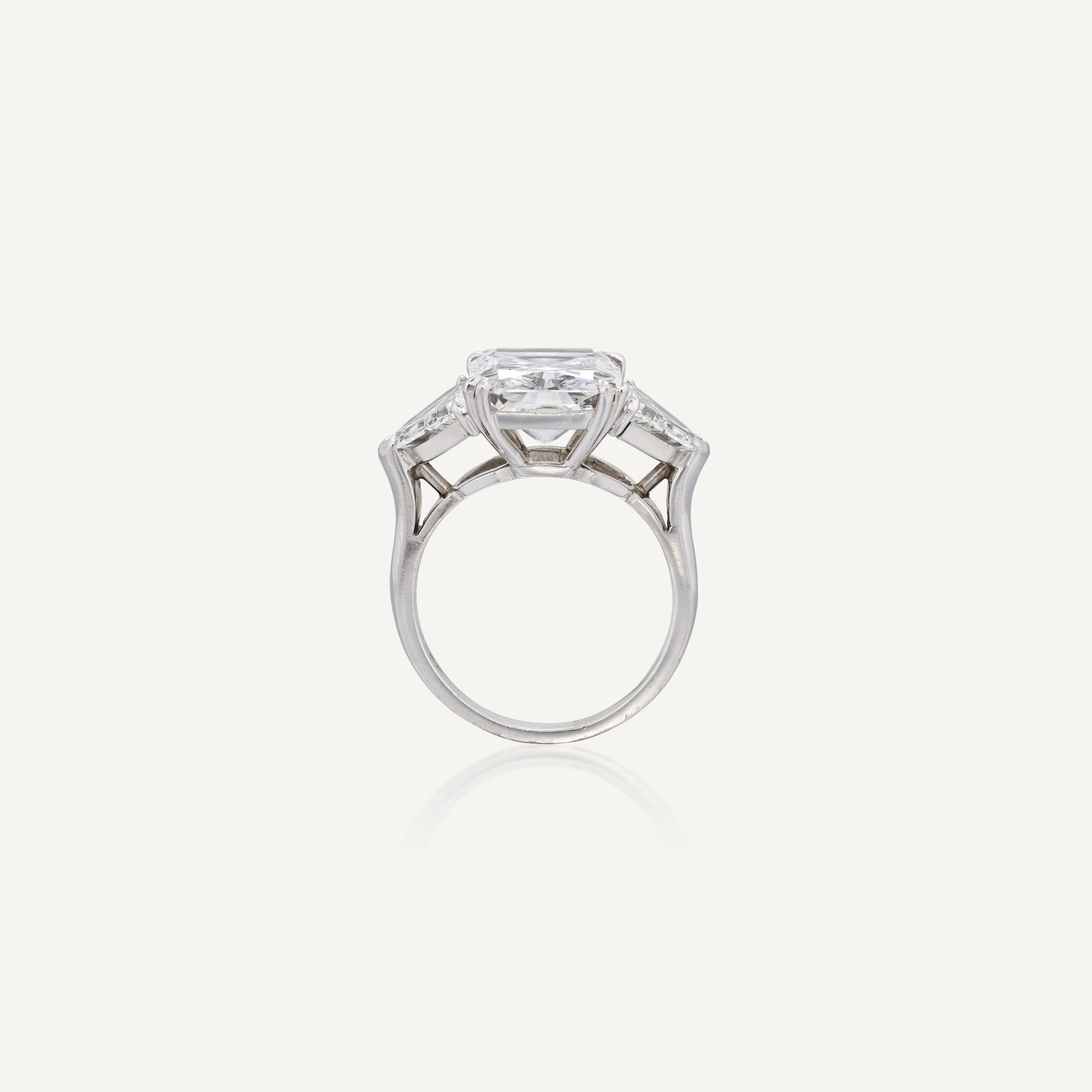 Think of this ring as a piece that edits, rather than complicates, your look. The clean line of the Radiant stones and the concentrated 5 carats of Brilliant White diamonds reward simple, architectural clothing β column dresses, precise blazers, cashmere knits and well-cut denim all give it room to breathe.