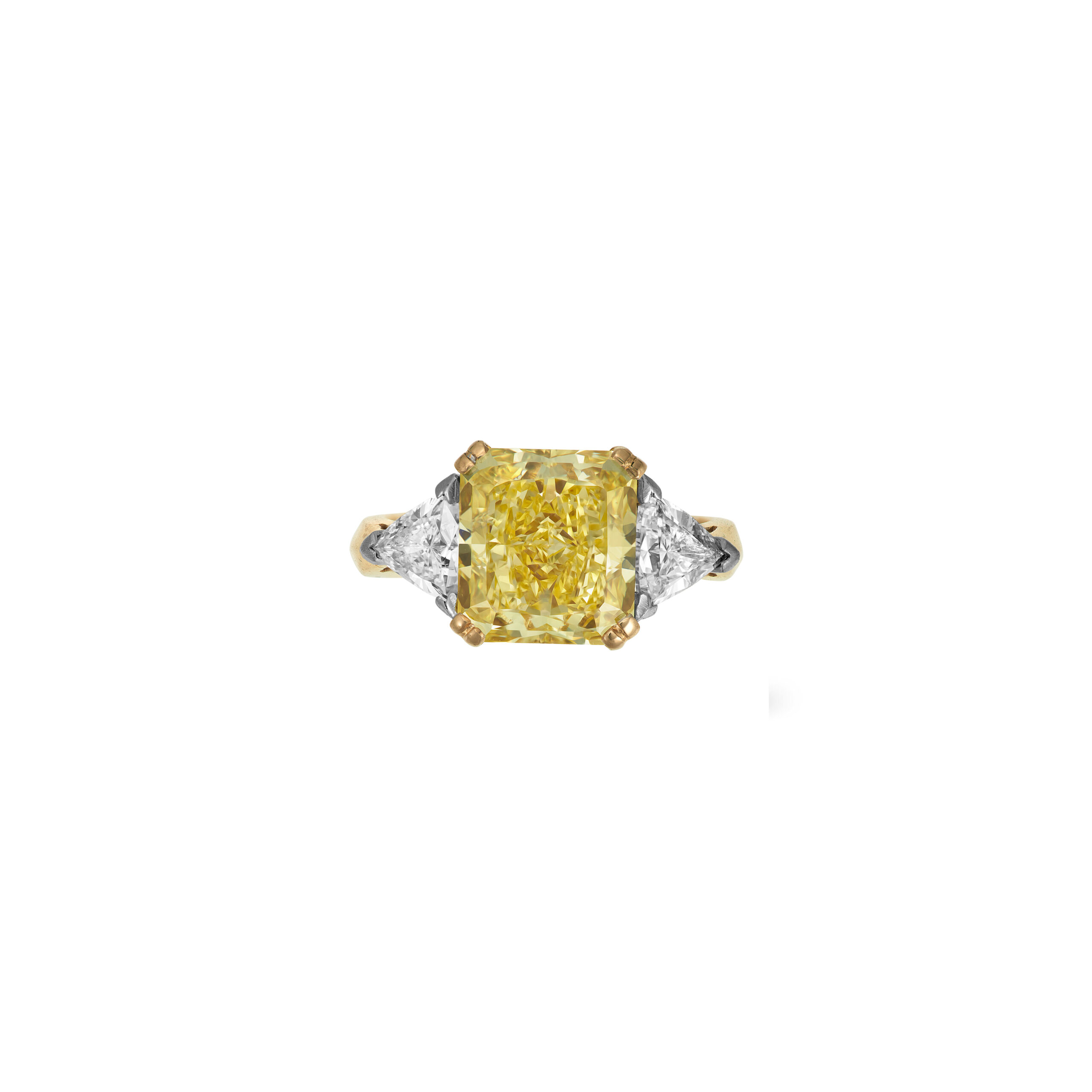 Approximately 5 carats, radiant, statement ring, diamond ring. A serious diamond ring with disciplined selection—meant to read clean at normal viewing distance. Colour family: Fancy Yellow. The silhouette is disciplined and intentional, designed to keep the piece elegant rather than overstated. Collectors appreciate how it stays coherent from every angle—no noisy flashes, just controlled brilliance. Made to be worn often, remembered clearly, and passed forward with pride. Colour-Collector’s Treasure—a piece defined by brilliance, poise, and longevity.