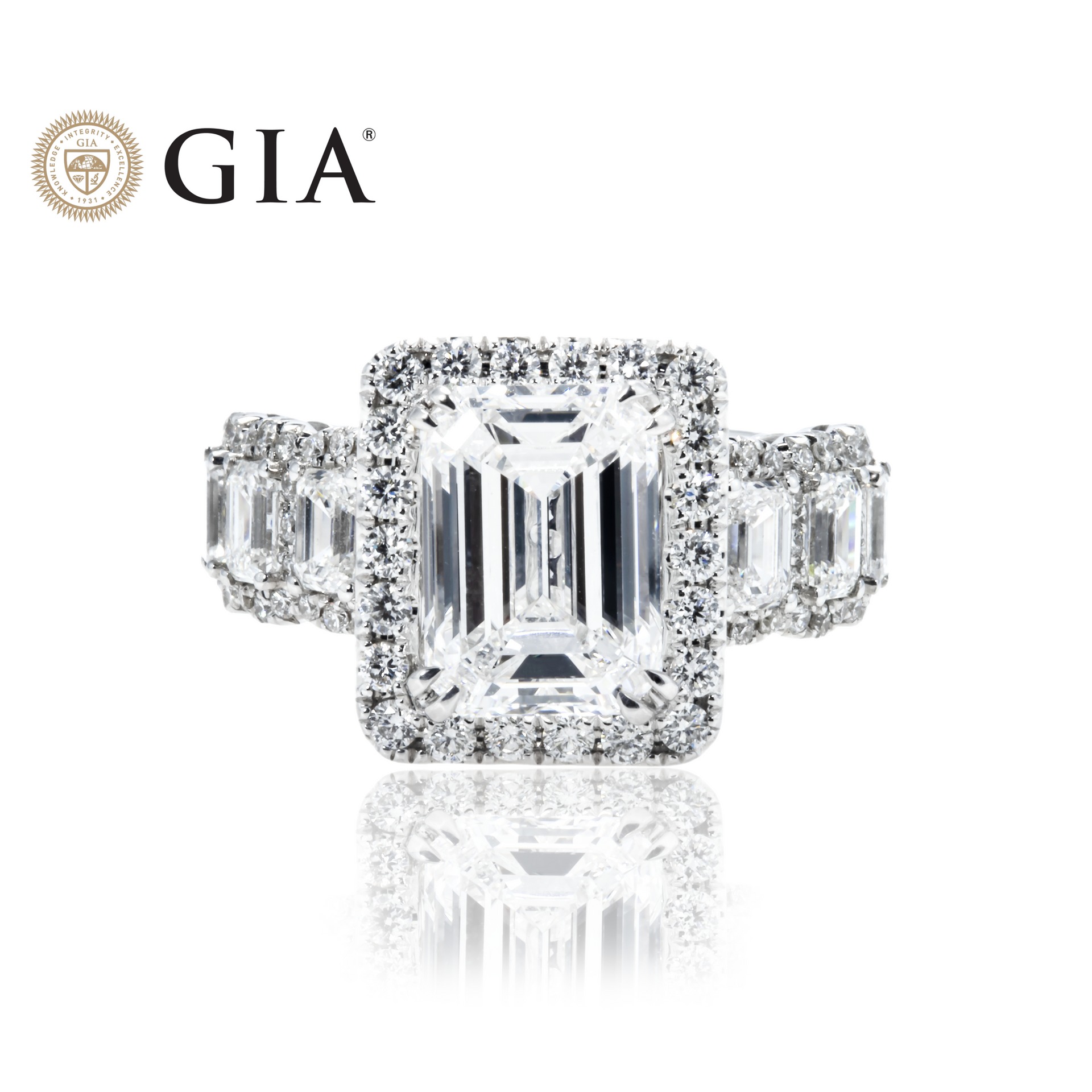 6.76 Carat Emerald Diamond Ring | 18K White Gold | Timeless Brilliance