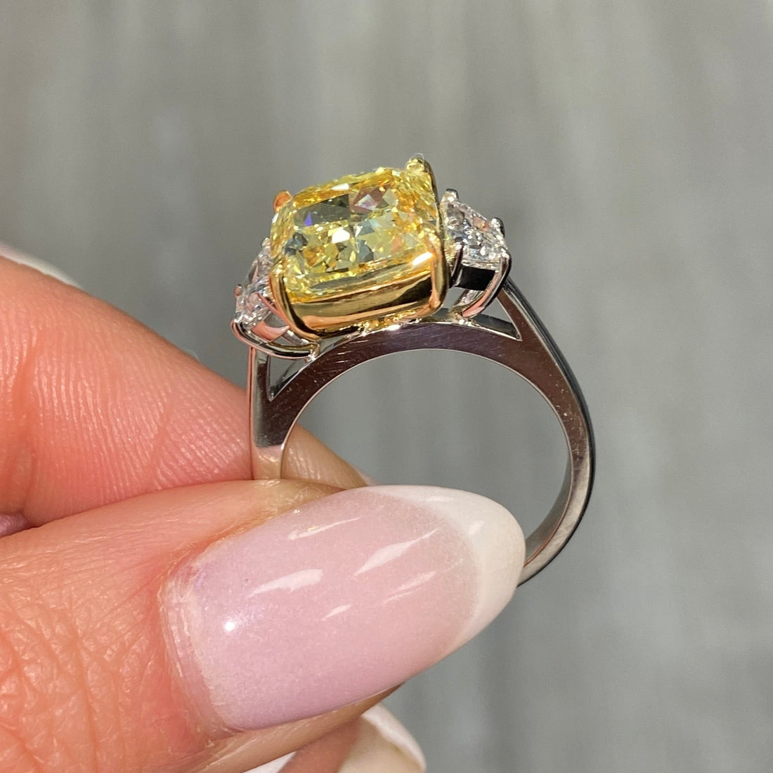 - Ho Ching · Boardroom dressing often relies on one disciplined cushion piece with a calm fancy yellow tone; this $175000 6ct fancy vivid yellow diamond cushion diamond engagement ring is created to sit quietly yet confidently in that environment.