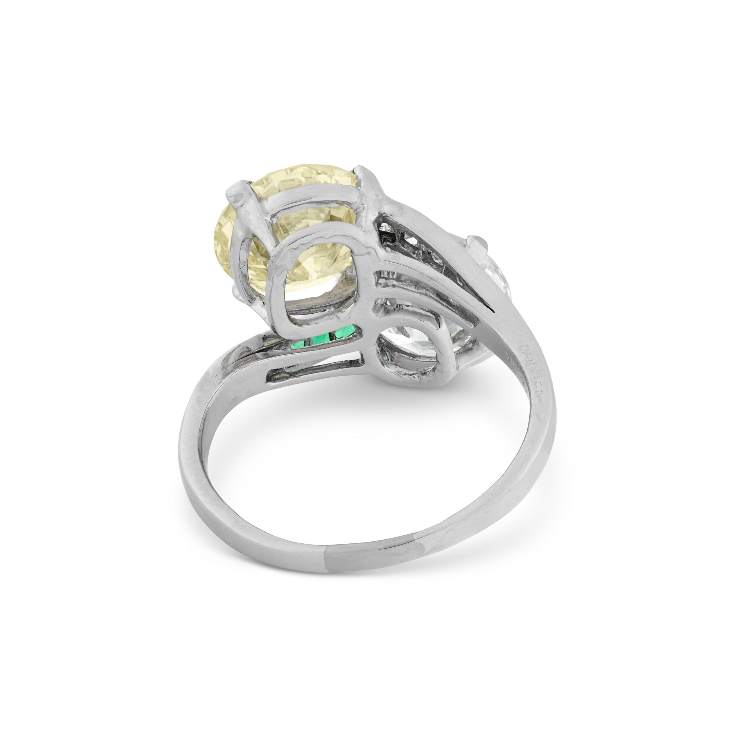 Approximately 6 carats, emerald, toi et moi, diamond ring. Built for clients who judge a ring in motion, not only in perfect studio light. Colour family: Fancy Yellow. Metal: 14K White Gold. The silhouette is disciplined and intentional, designed to keep the piece elegant rather than overstated. Collectors appreciate how it stays coherent from every angleβno noisy flashes, just controlled brilliance. An enduring asset in jewel form: beautiful to wear, credible to document. Colour-Collectorβs Treasureβa piece defined by brilliance, poise, and longevity.