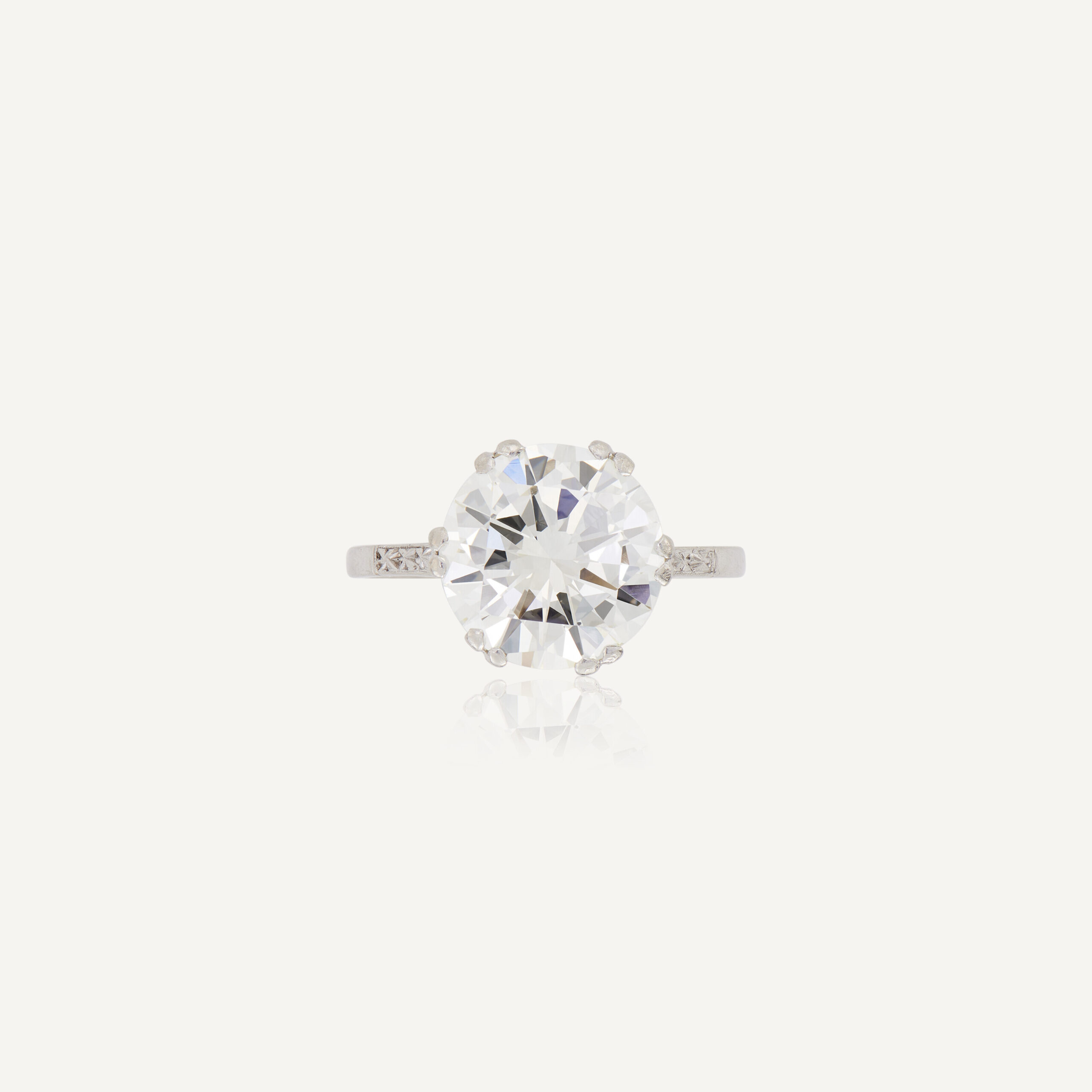Approximately 6 carats, round brilliant, statement ring, diamond ring. A serious diamond ring with disciplined selectionβ€”meant to read clean at normal viewing distance. Colour family: Brilliant White / J color. Clarity: VVS. Metal: 14K White Gold. The silhouette is disciplined and intentional, designed to keep the piece elegant rather than overstated. It feels substantial on the hand, yet remains practical enough to be worn often rather than stored away. For clients who invest in fewer, better jewelsβ€”and want that decision to show. Flawless-Level Presenceβ€”a piece defined by brilliance, poise, and longevity.