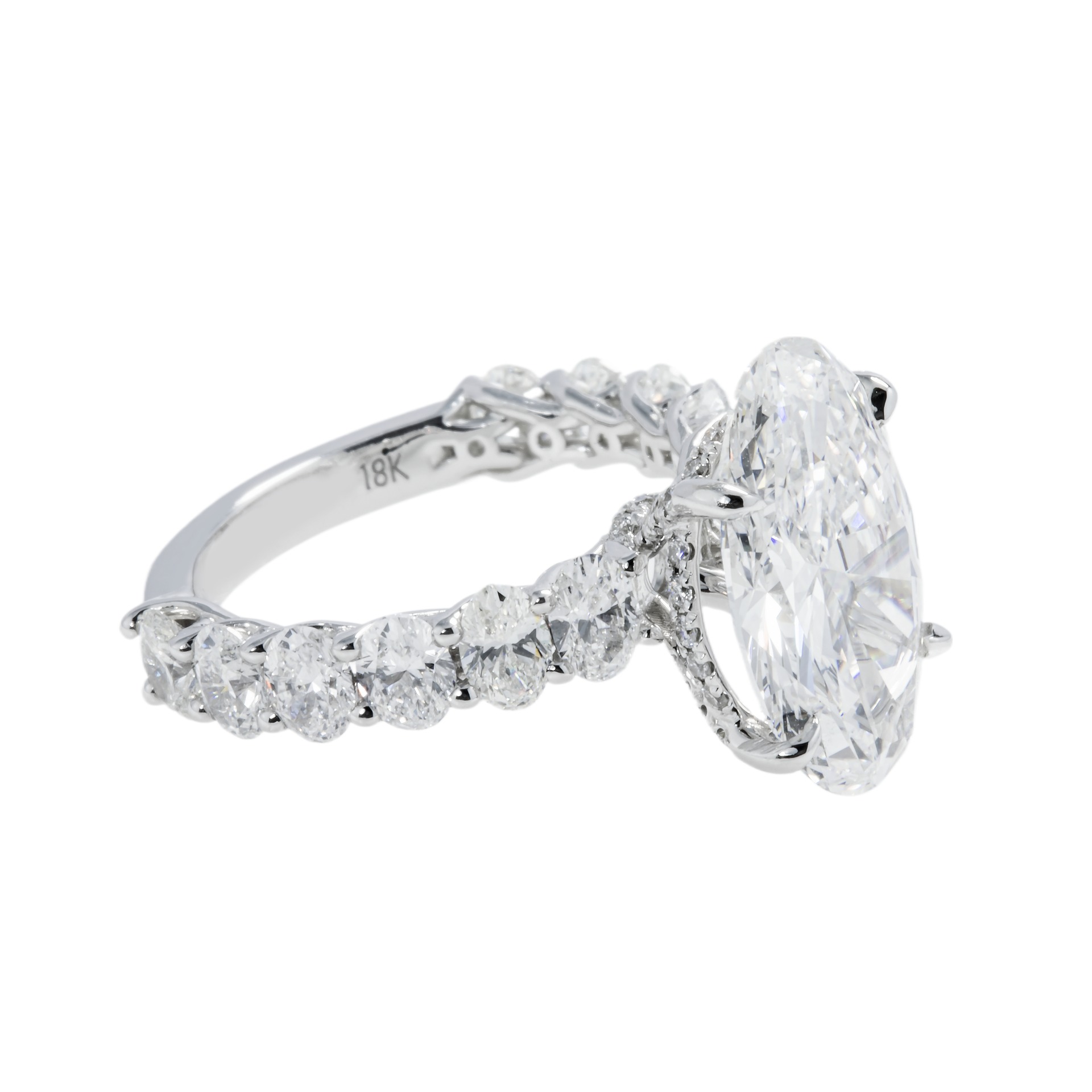 7.78 Carat Oval Diamond Ring | Brilliant White | 18K White Gold | Heirloom-Worthy Glow
