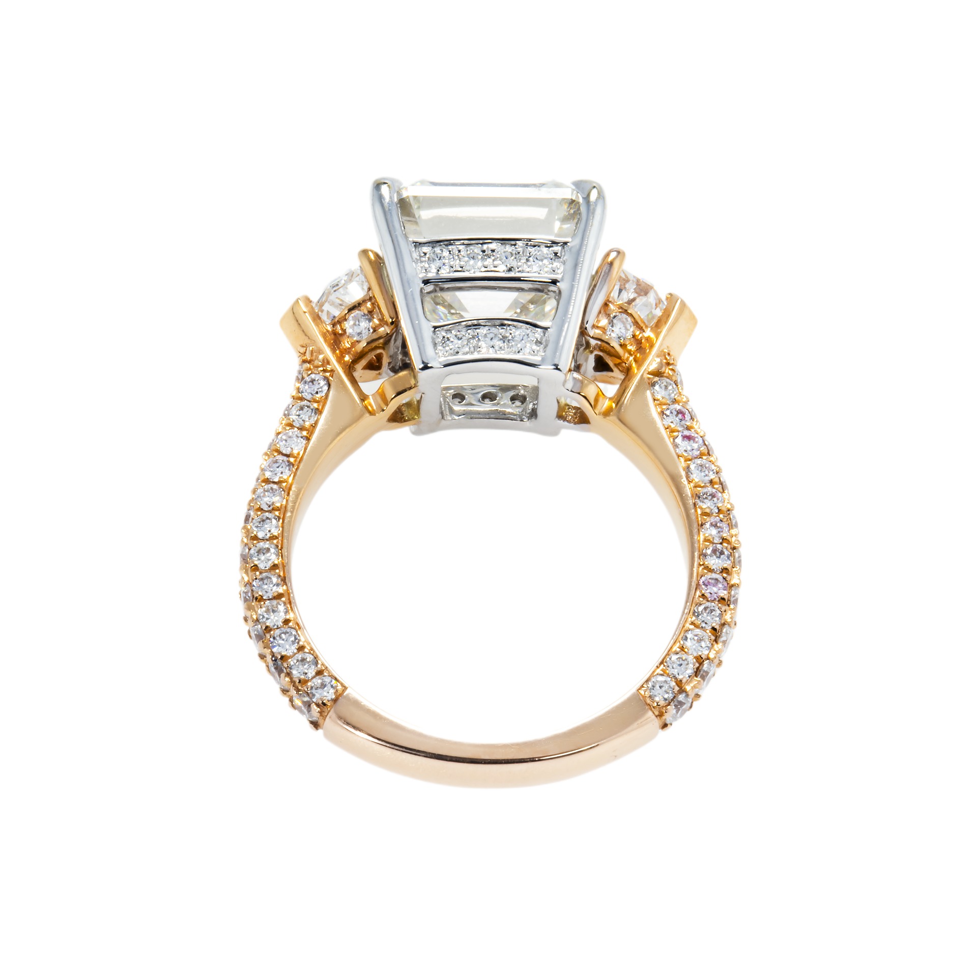 For clients who enjoy a strong diamond look, the 7.82 carats of Asscher diamonds provide exactly that effect. The ring feels like a true high jewelry statement when you enter a room, yet remains balanced enough to be worn with confidence every day.