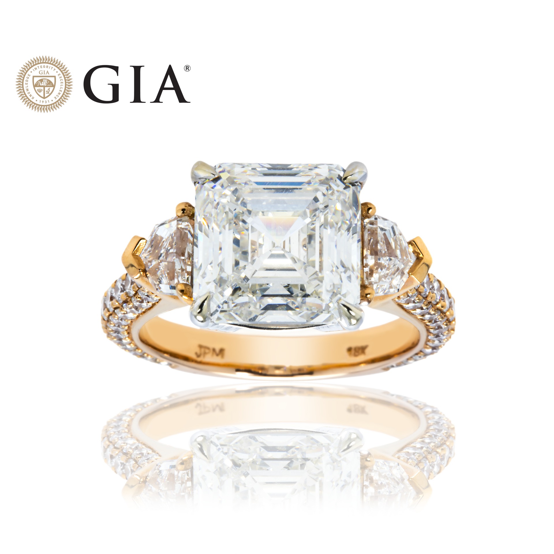 7.82 Carat Asscher Diamond Ring | Brilliant White | 18K Rose Gold | Refined Grandeur
