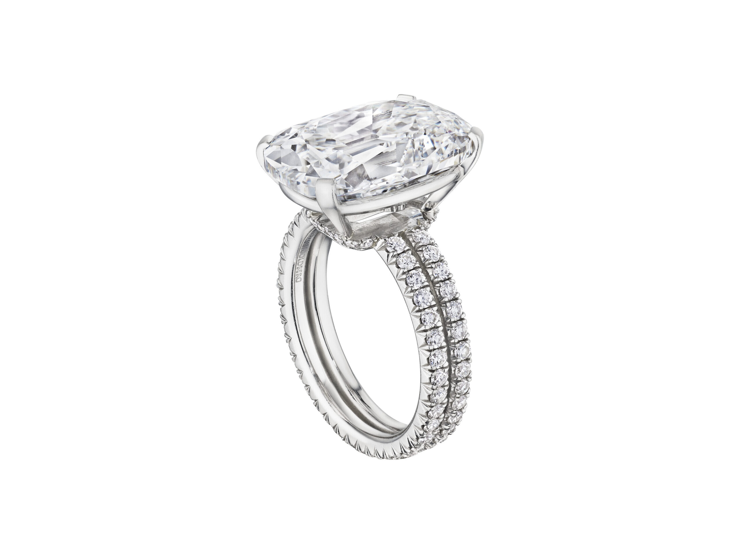 The restrained metalwork is deliberately secondary, so the diamonds and their Brilliant White character define the mood and identity of the ring entirely.