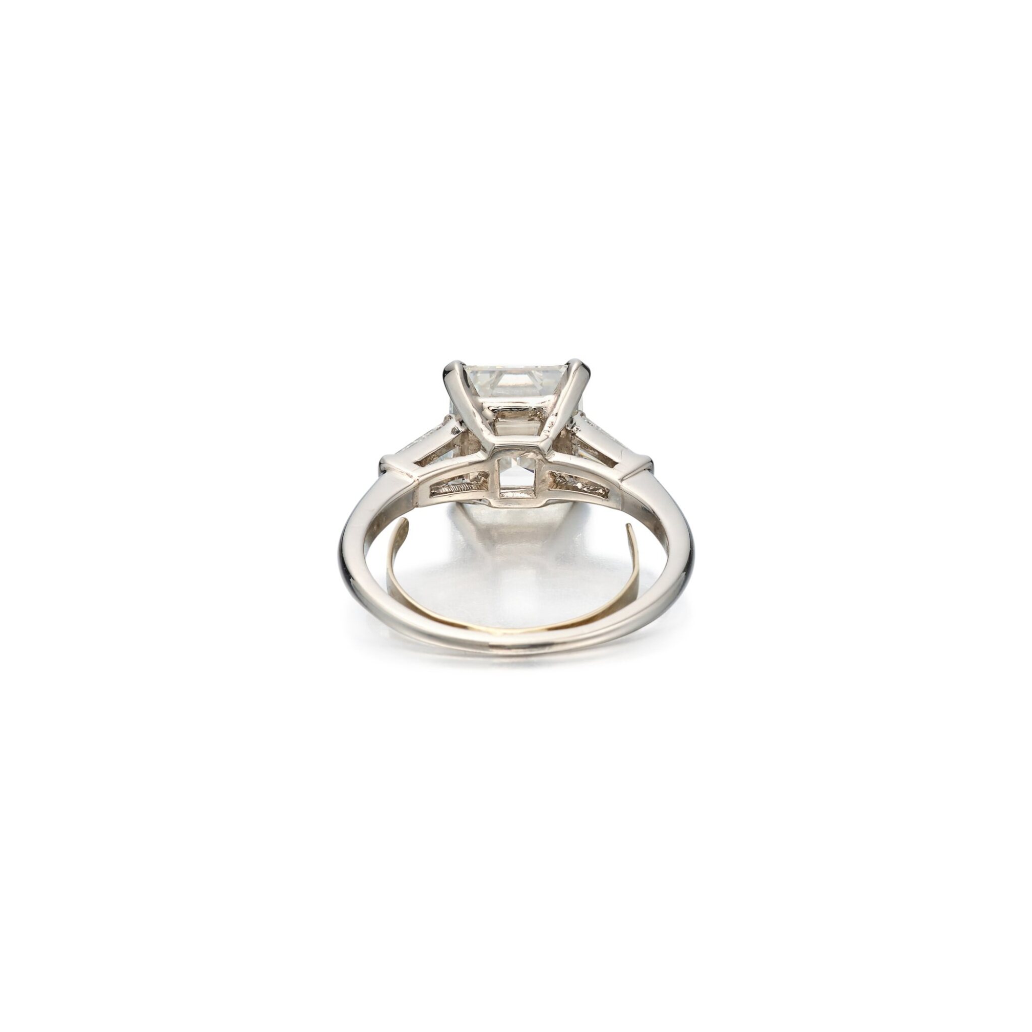 Approximately 7 carats, emerald, statement ring, diamond ring. A collector-facing piece where proportion and light return are treated as non-negotiable. Colour family: Brilliant White. Clarity: VVS. Every decision is made for visual integrity: even sparkle, clean outline, and a flattering look across lighting conditions. Its value is in its discipline: the ring looks composed up close and commanding from across a room. An enduring asset in jewel form: beautiful to wear, credible to document. Purity in Perfection—a piece defined by brilliance, poise, and longevity.