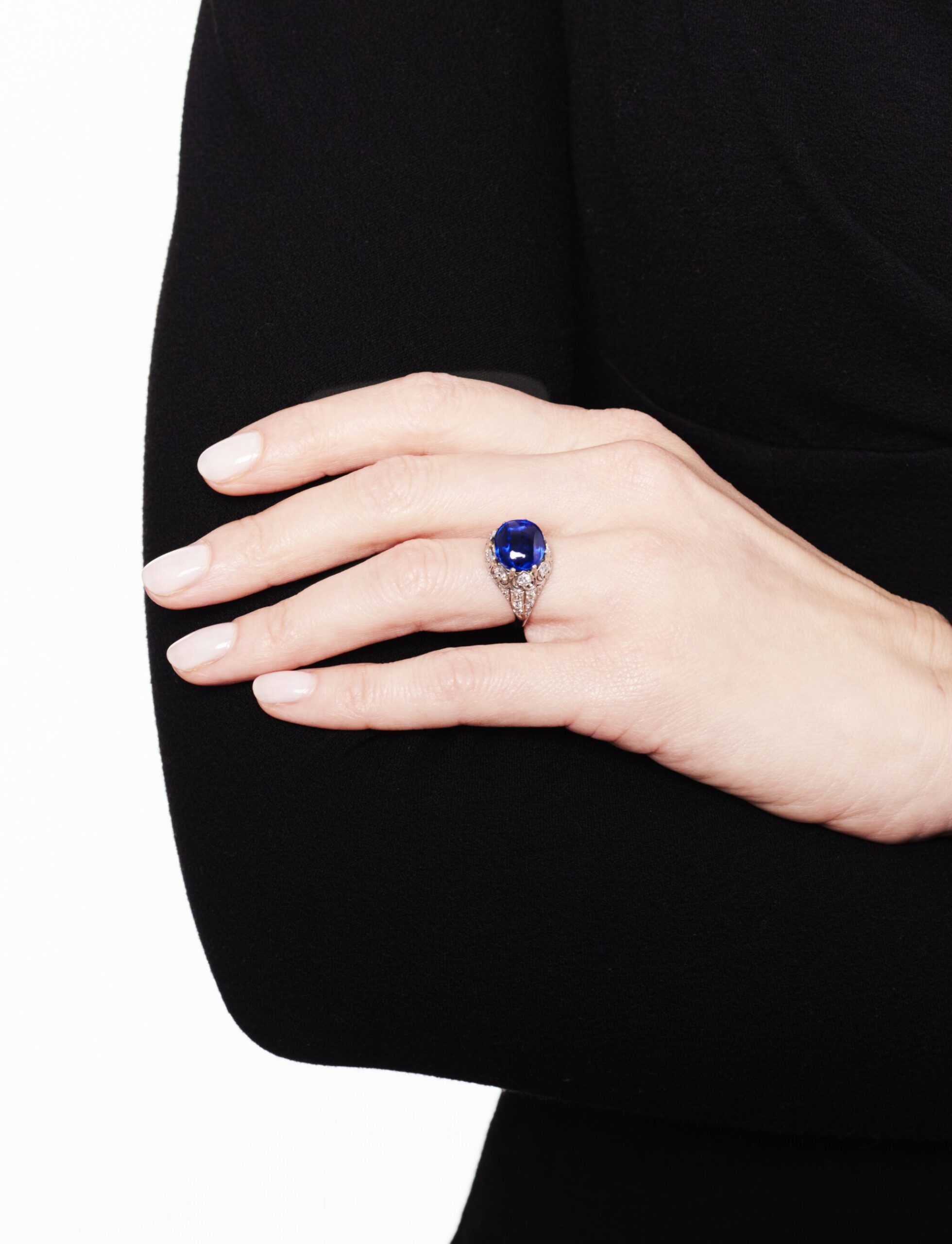 Seats for the diamonds and gemstones are cut, refined and tested under magnification, while the shoulders and shank are tapered so the weight of approximately 7 carats of Royal Blue Sapphire brilliance is distributed comfortably across the finger. This invisible engineering is what allows the ring to feel surprisingly easy to wear, even though it lives firmly in the world of serious high jewelry.