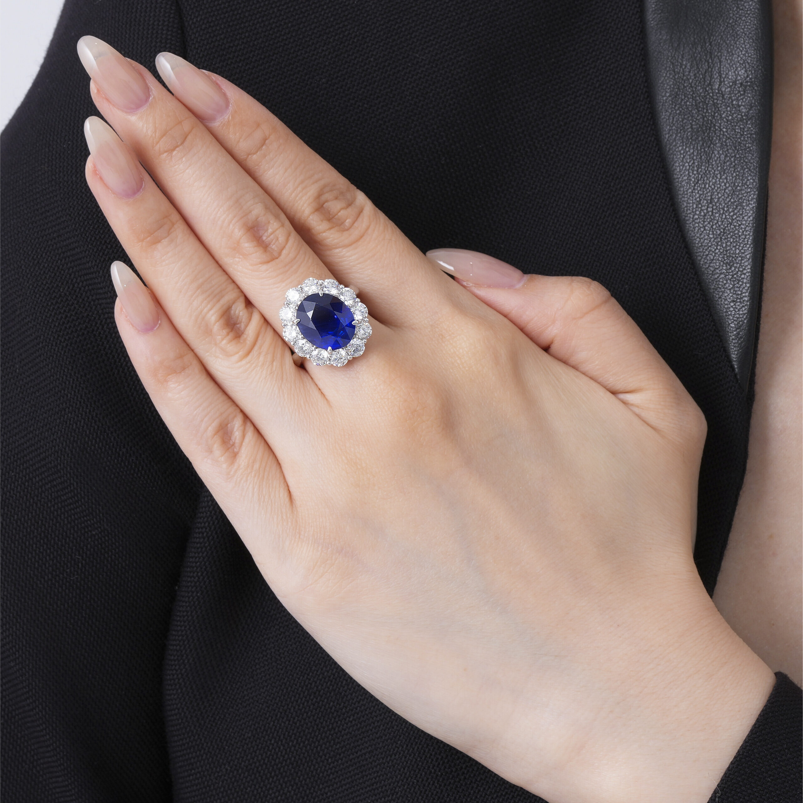 From a styling perspective, the strength of this design lies in its clarity: a disciplined row of Oval diamonds and gemstones, a focused 8.09 carats of Royal Blue Sapphire light and a considered High Jewelry Statement Ring profile. In everyday use, that means you can keep everything else quiet and still feel fully dressed – a single bracelet, a classic pair of earrings and perhaps one additional ring are more than enough.