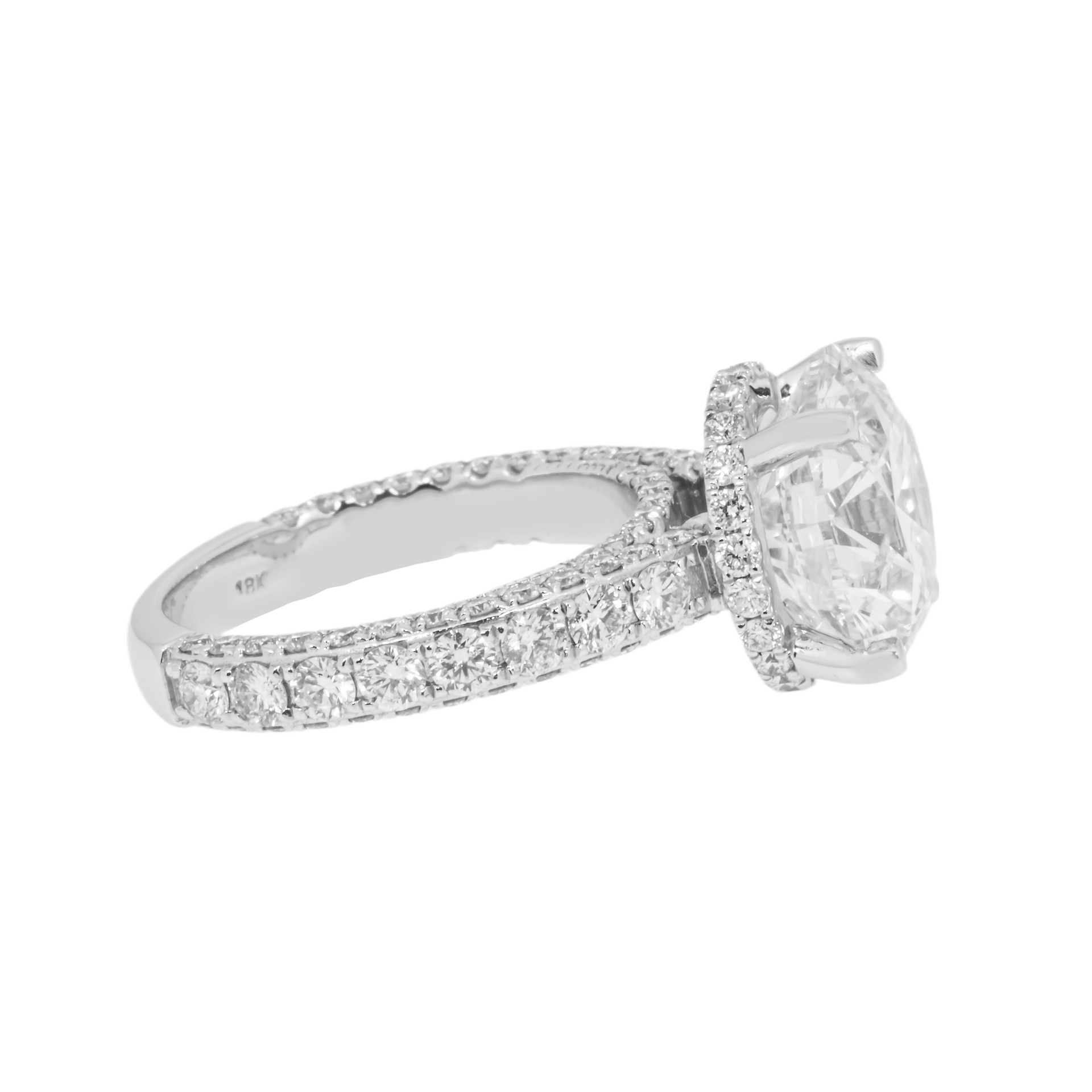 The eye doesn’t pick out individual settings; it simply reads a continuous, couture-level wash of brilliance flowing around the finger.