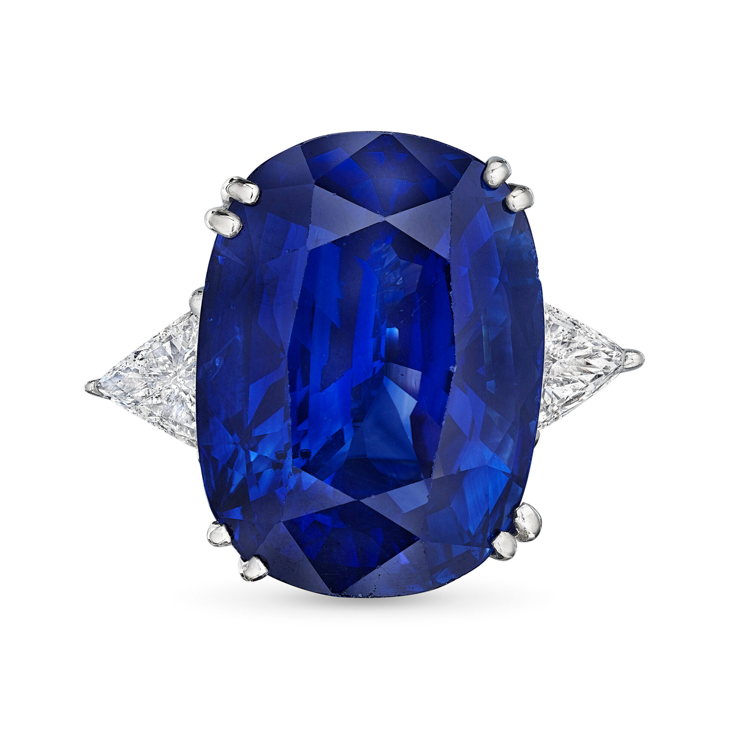 This Legacy ring channels the energy of important collection pieces, built around approximately 8 carats of carefully matched Royal Blue Sapphire Cushion cut diamonds.