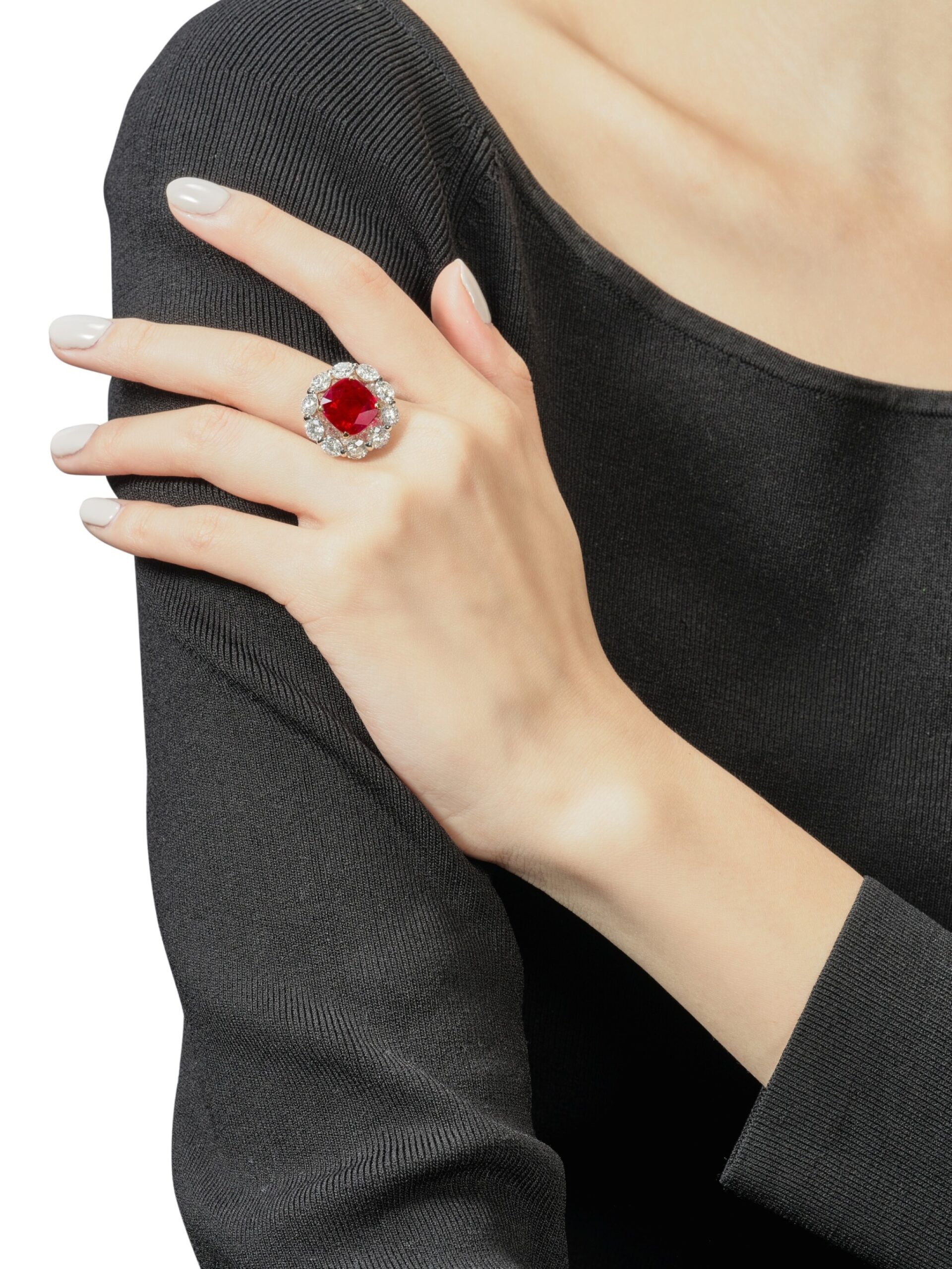 Only then are individual seats cut, claws thinned and contoured, and the inner band shaped to follow the hand’s natural curve, so approximately 8 carats of Ruby Red brilliance feels calm, centred and secure. It is this combination of invisible engineering and visible ease that marks the piece as true high jewelry rather than simple ornament.