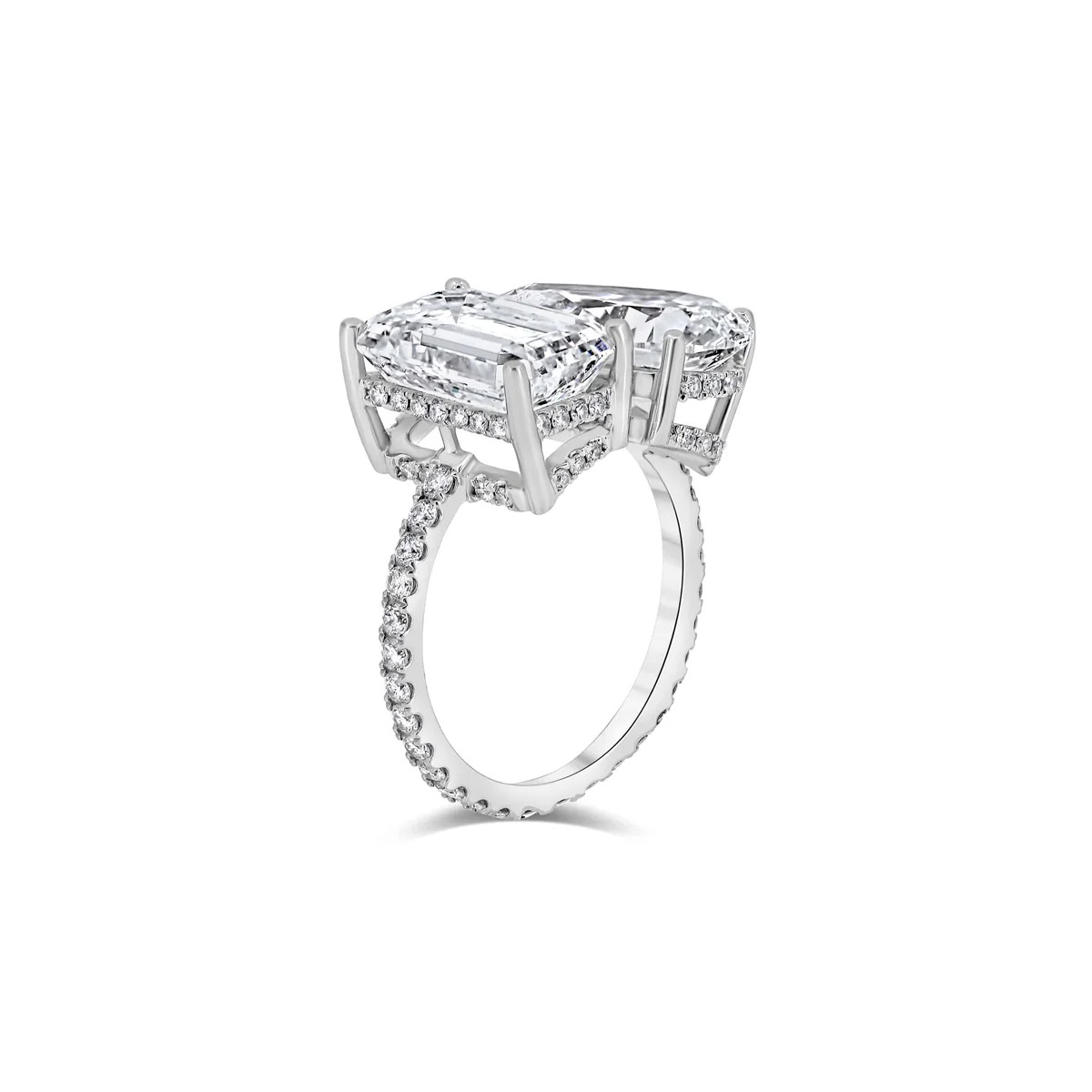 8 Carat Emerald-cut Toi Et Moi Diamond Ring | VS | 14K White Gold