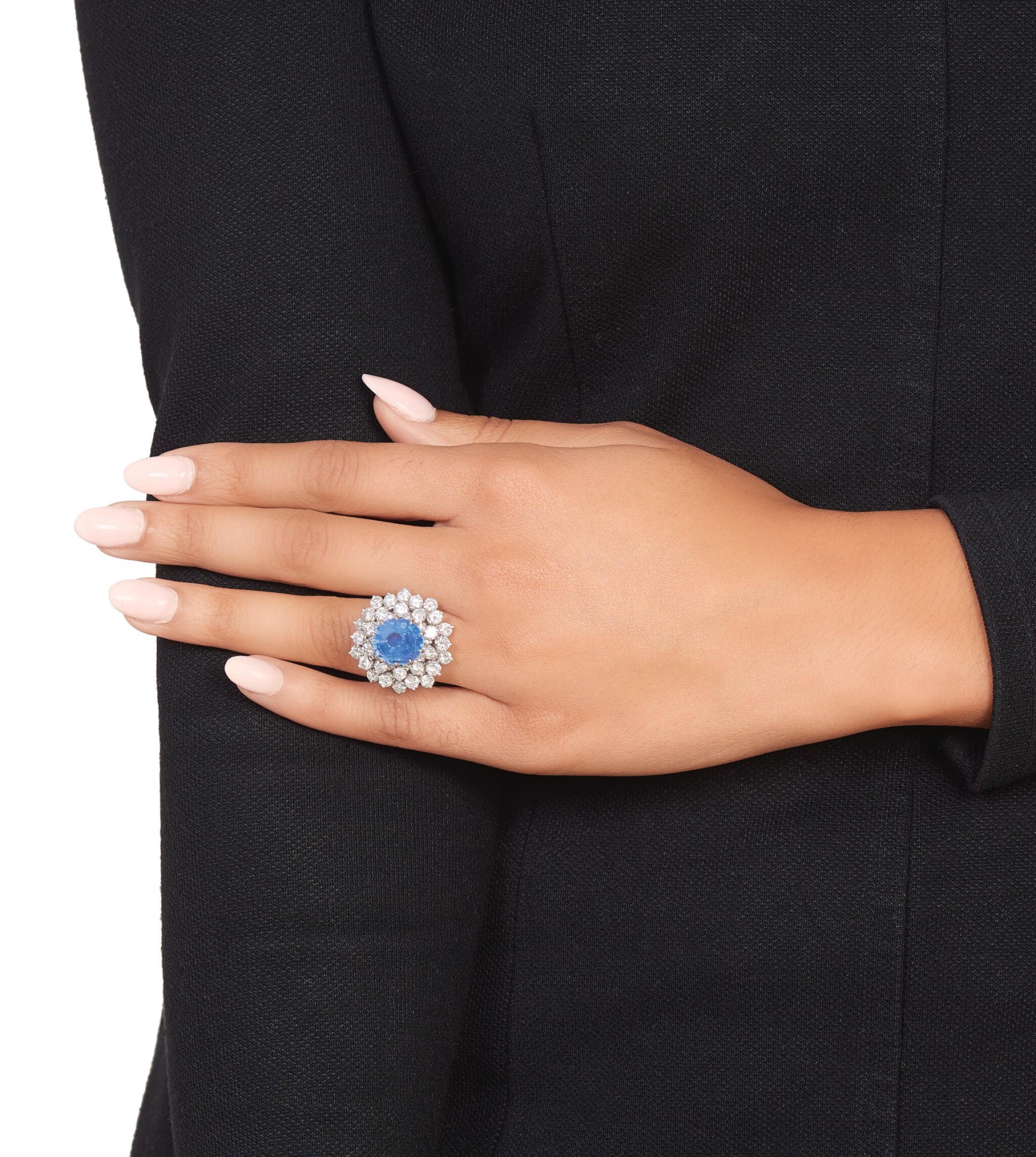 Think of this ring as a piece that edits, rather than complicates, your look. The clean line of the Oval stones and the concentrated 8 carats of Royal Blue Sapphire diamonds and gemstones reward simple, architectural clothing β column dresses, precise blazers, cashmere knits and well-cut denim all give it room to breathe.