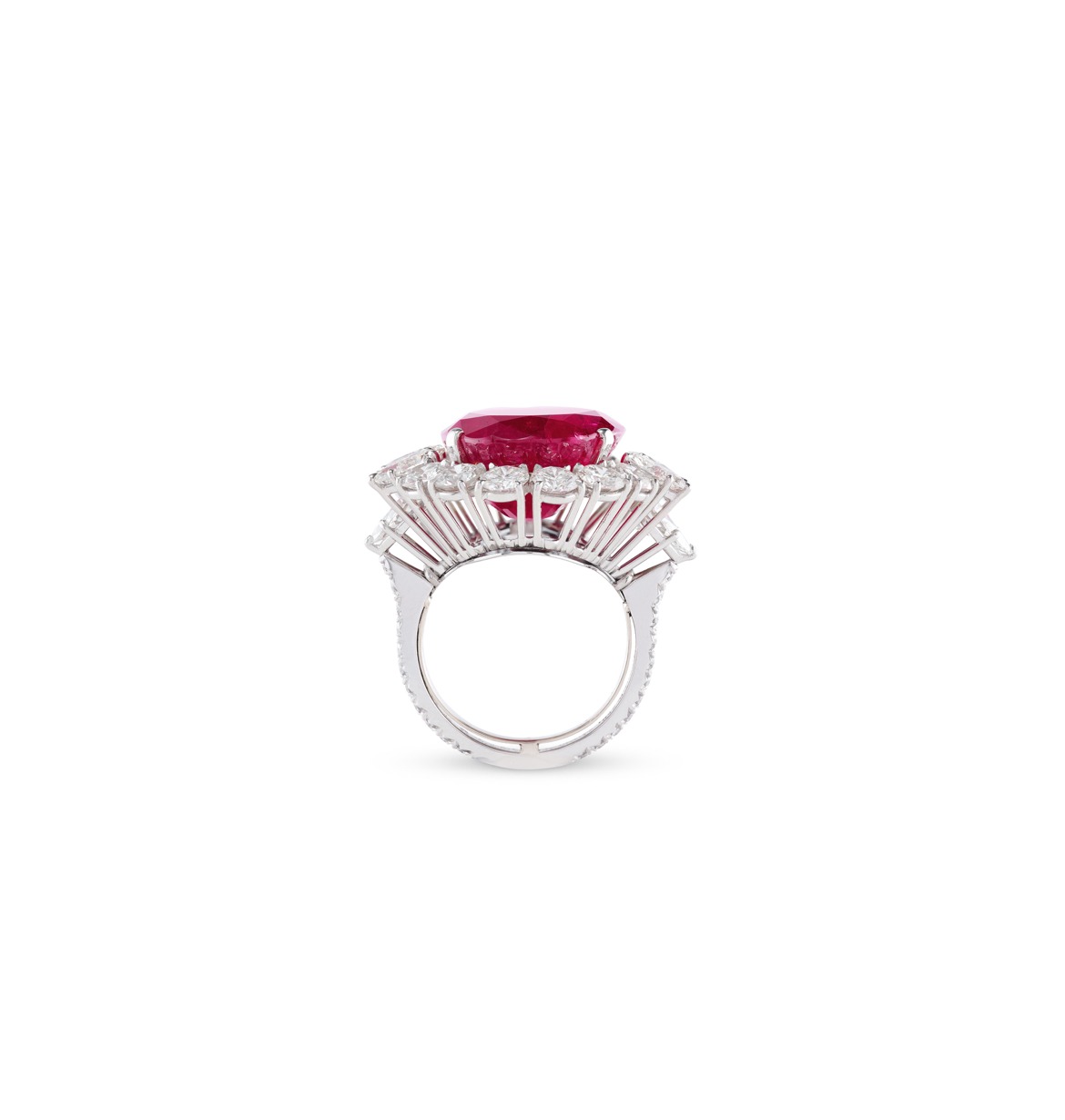 Some rings are bought to match an outfit; this one is chosen to match a mindset. The scale of 8 carats of gemstones, the calm Ruby Red tone and the composed Oval line all point to a wearer who is comfortable being under-stated in conversation and unmistakable in detail.