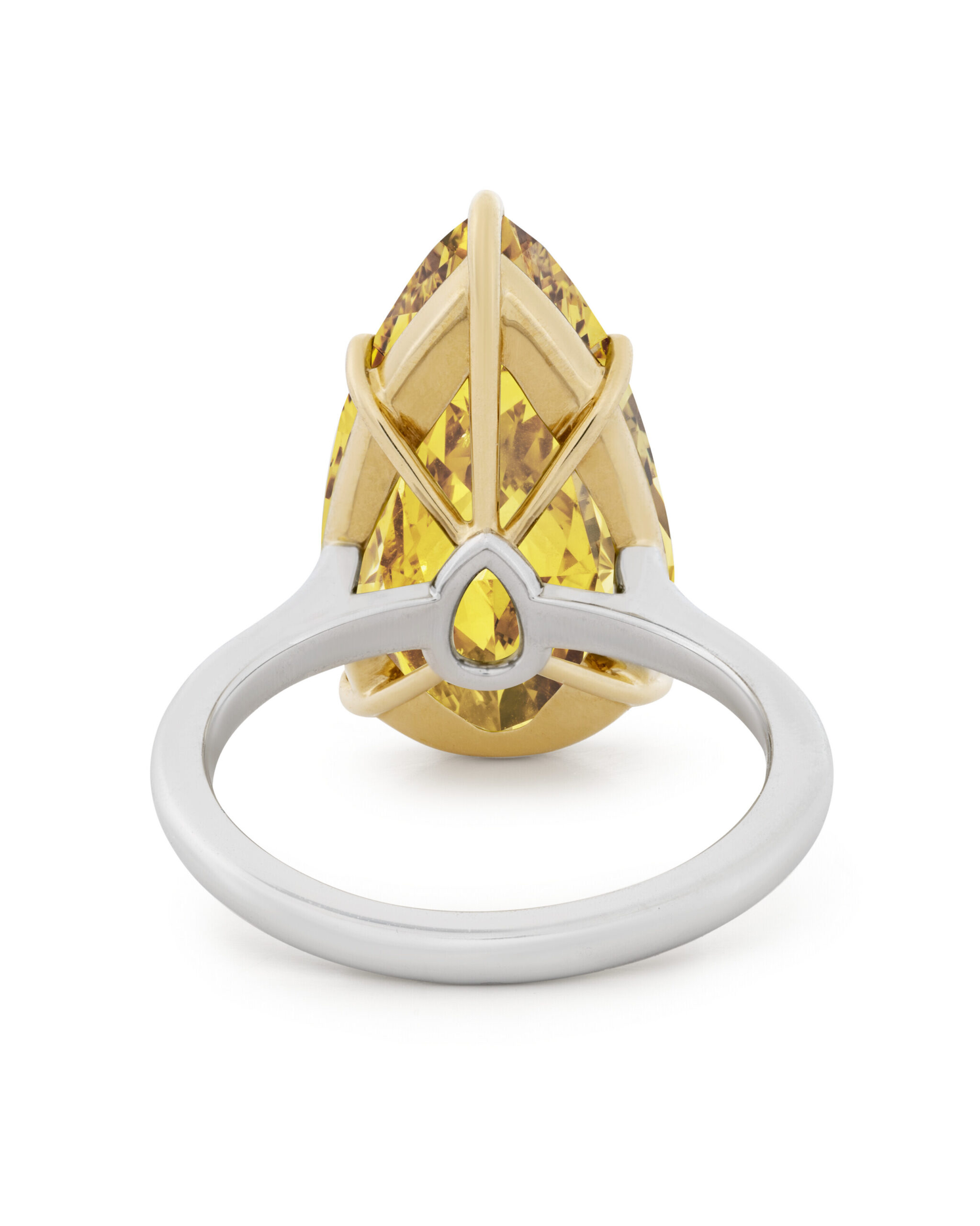Approximately 8 carats, pear, statement ring, diamond ring. A collector-facing piece where proportion and light return are treated as non-negotiable. Colour family: Fancy Yellow. Every decision is made for visual integrity: even sparkle, clean outline, and a flattering look across lighting conditions. It is the kind of ring that lives well in a serious jewellery wardrobe: confident, clean, and consistently flattering. Made to be worn often, remembered clearly, and passed forward with pride. Sunlit Royal Radiance—a piece defined by brilliance, poise, and longevity.