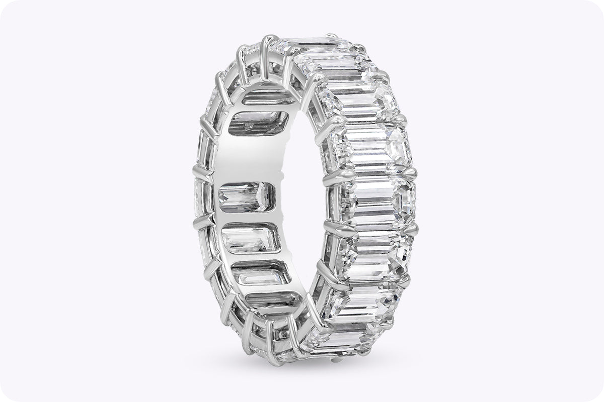 - Justine Henin Β· For those who thrive under pressure, this $35000 9.94 carat total emerald cut diamond eternity wedding band responds with stabilityβits emerald cut proportions and Brilliant White fire remaining composed whether under spotlights or soft light.