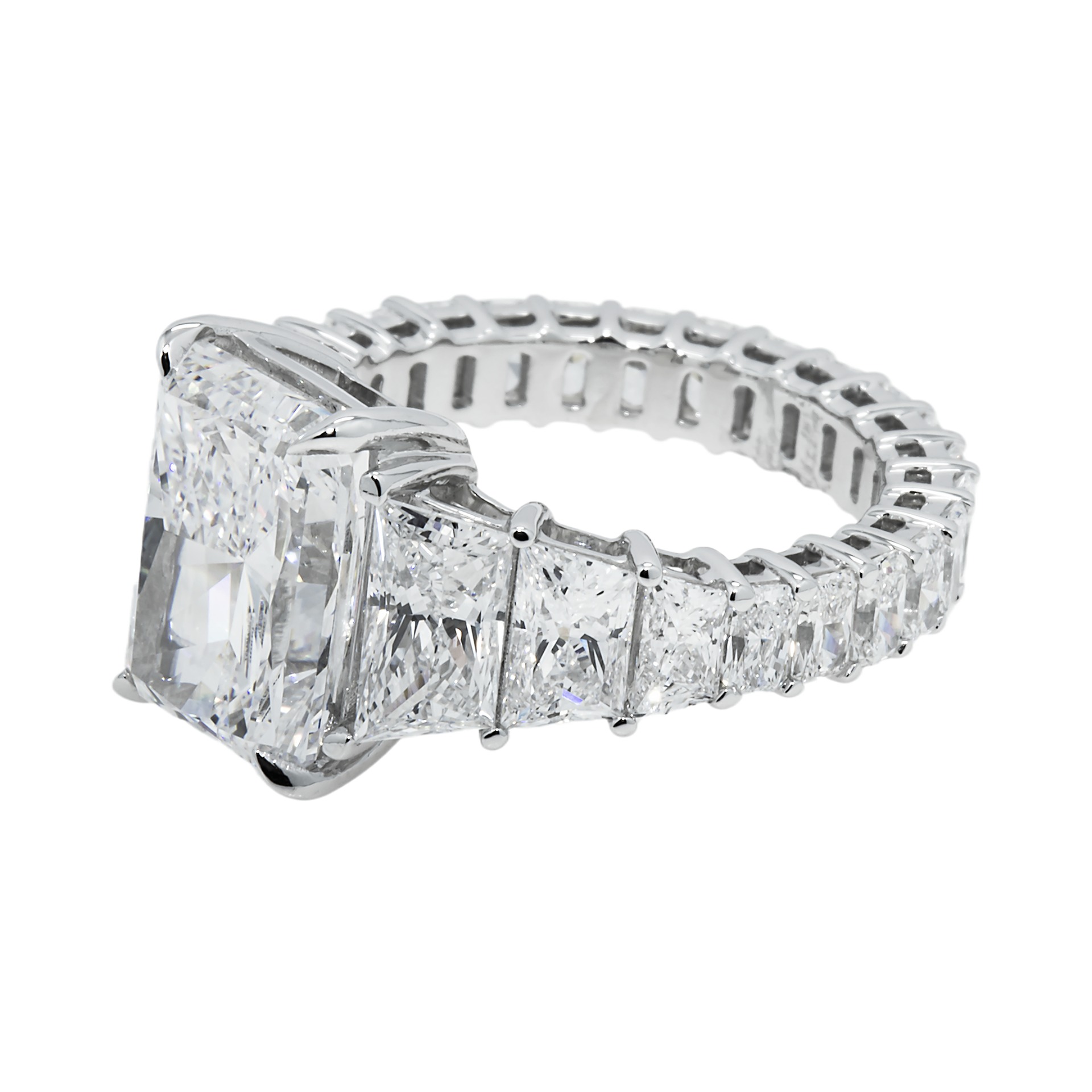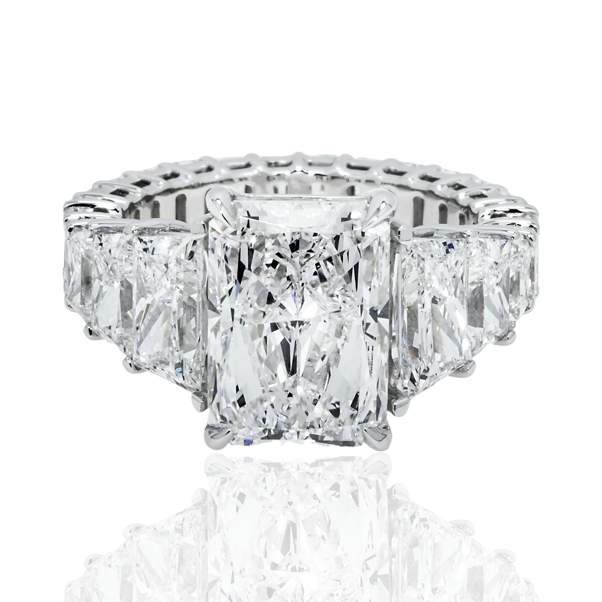 In this design, Legacy pursues purity of line and light, allowing approximately Carat weight on request of Brilliant White Radiant cut diamonds to command the composition.