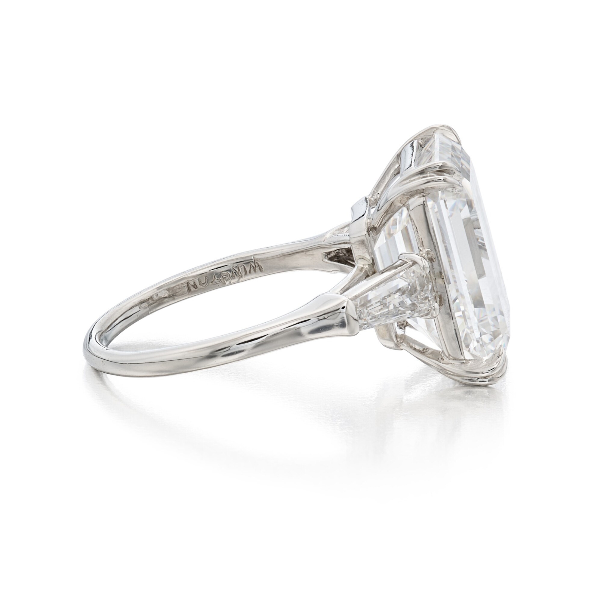 In this design, Legacy pursues purity of line and light, allowing approximately 9 carats of Brilliant White Emerald cut diamonds to command the composition.