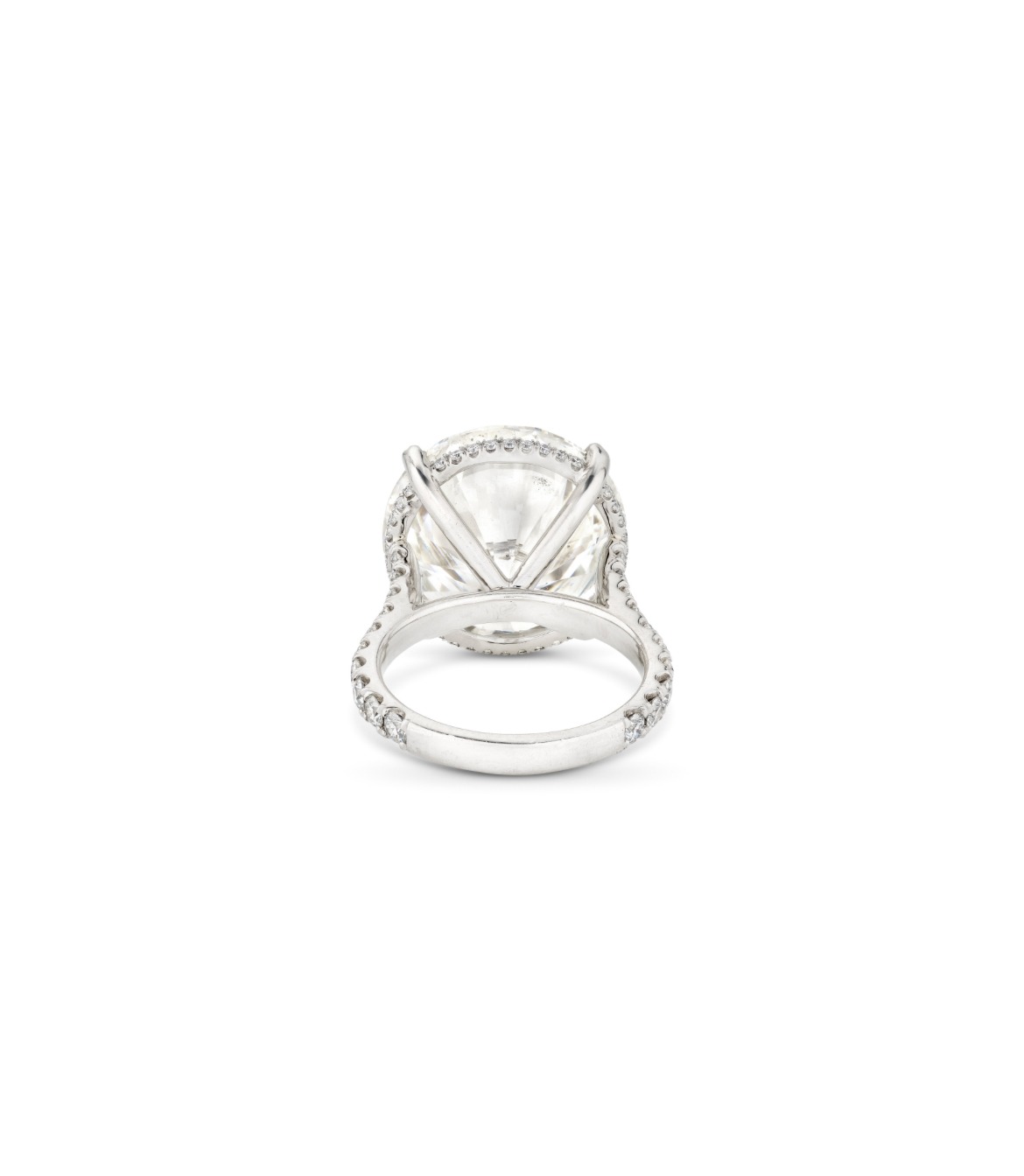 Styled correctly, a 9 carats Brilliant White High Jewelry Statement Ring like this can anchor your entire jewelry story. In the day, keep things deliberate and minimal – a single wedding band or eternity ring, a discreet pair of studs and perhaps one bracelet are enough to let the diamonds speak without competition.