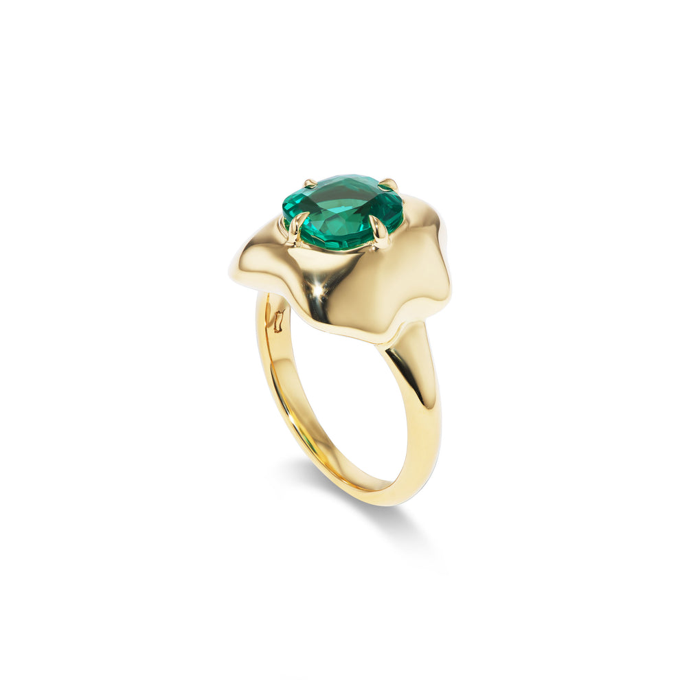 The carat weight of approximately Carat weight on request has been deliberately focused into the area that matters most: the top of the finger. This concentration of Emerald Green light allows the ring to photograph powerfully and to hold its own beside serious timepieces and bracelets.