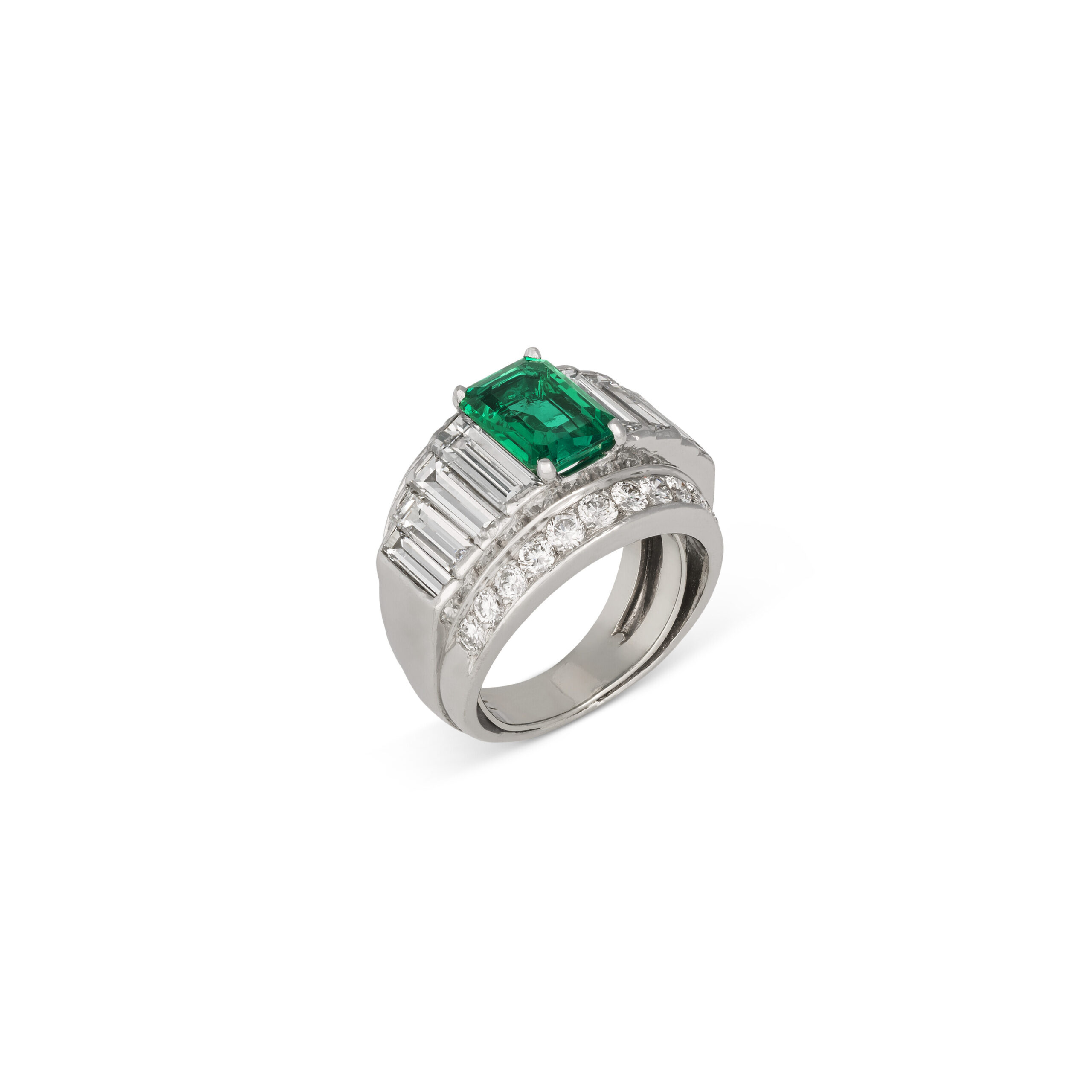 Created for a small circle of collectors, this Legacy ring brings together approximately Carat weight on request of Emerald Green Emerald cut diamonds for a look that feels both composed and unmistakably high jewelry.
